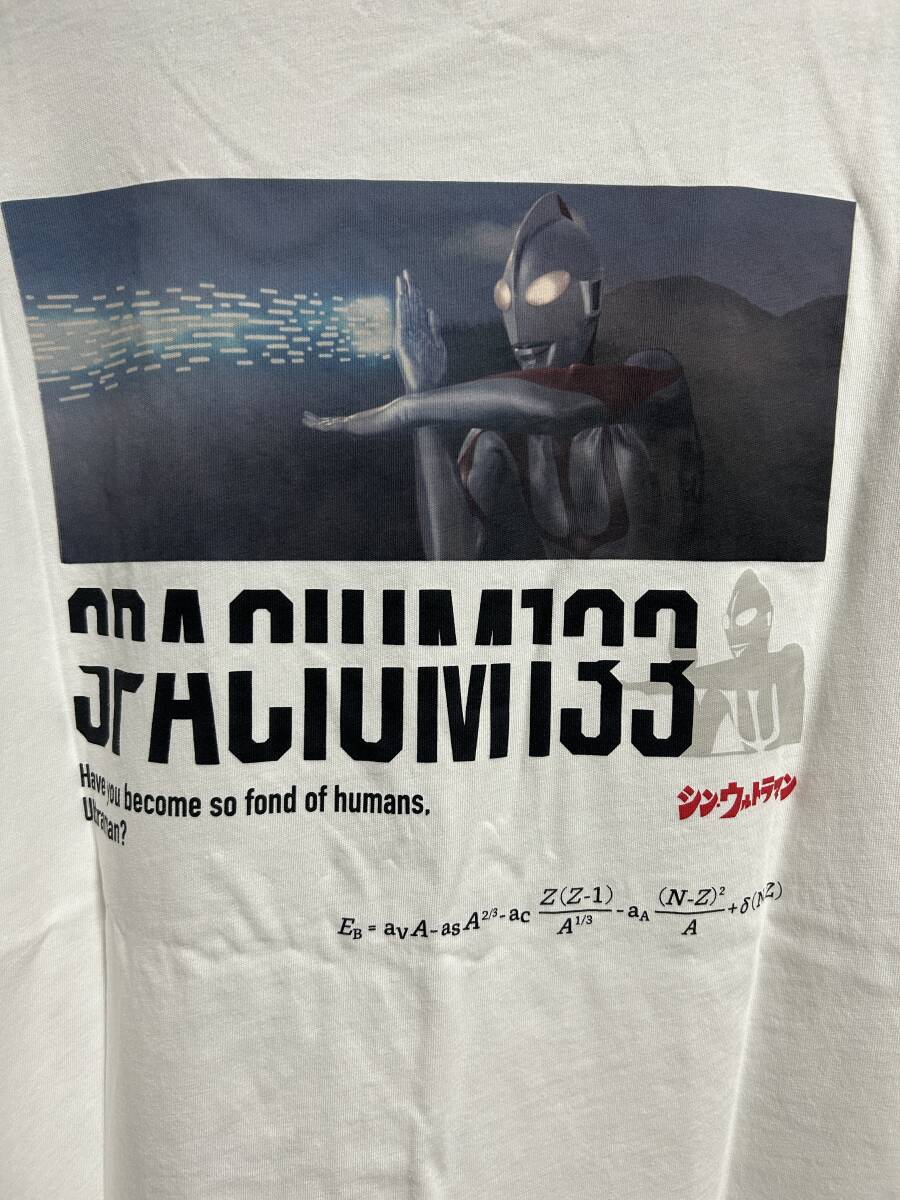 Tシャツ背面に、ウルトラマンのエネルギー源である「スペシウム133」とそれに関連する数式、更にゾーフィが投げかけた印象的なセリフを配置したデザイン。
