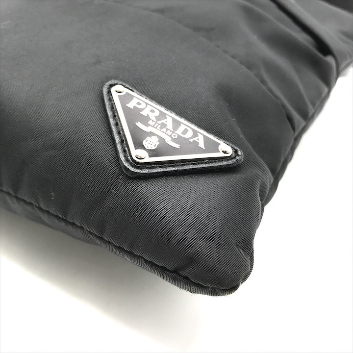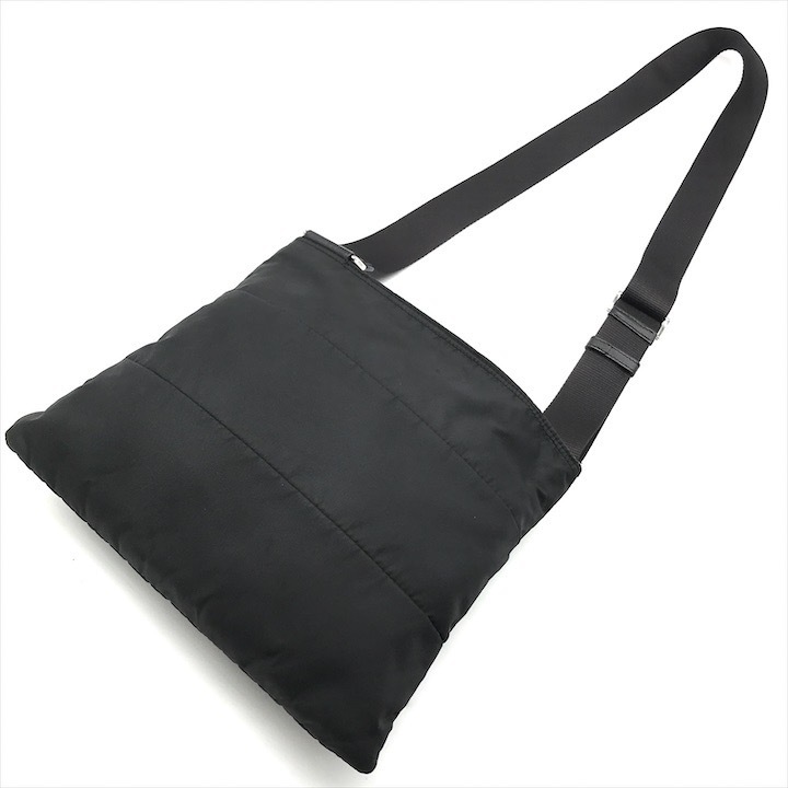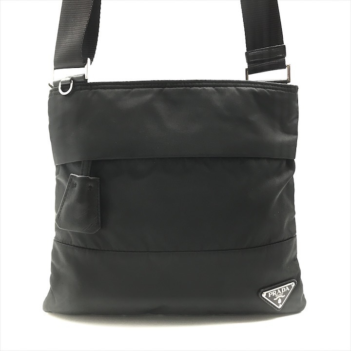 良品 PRADA プラダ 三角ロゴ プレート ショルダー バッグ ナイロン 斜め掛け ポシェット ブラック k2039 | |||