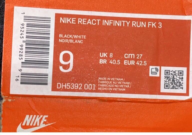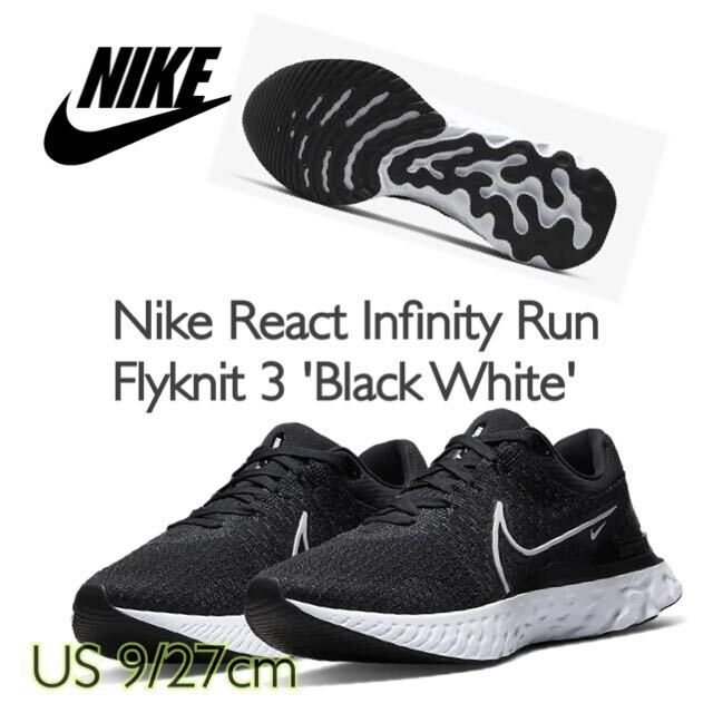Nike React Infinity Run Flyknit 3 'Black White' ナイキ リアクト インフィニティ ラン フライニット 3 (DH5392-001)黒27cm箱無し