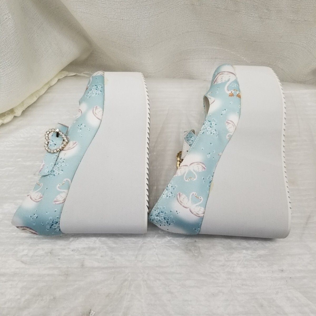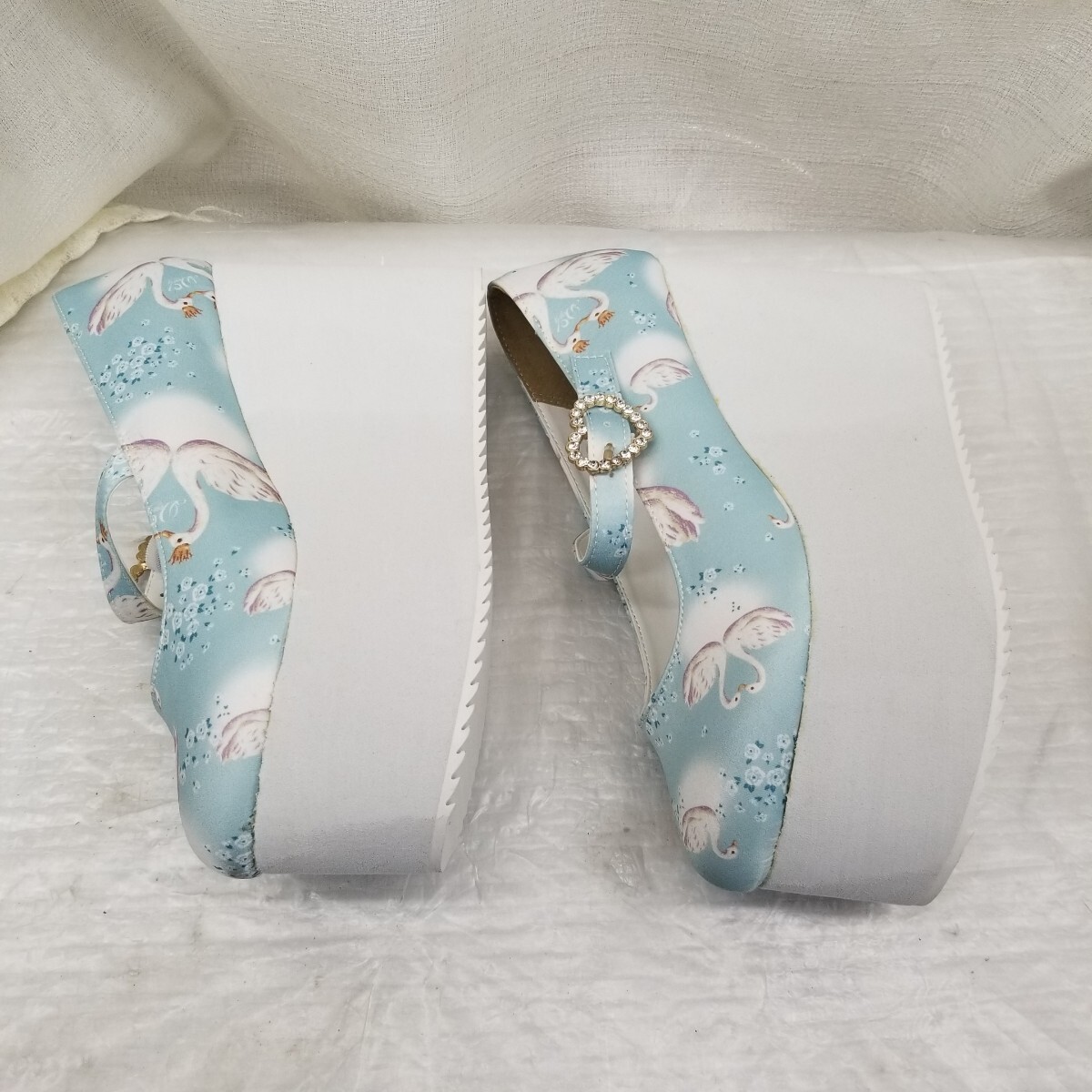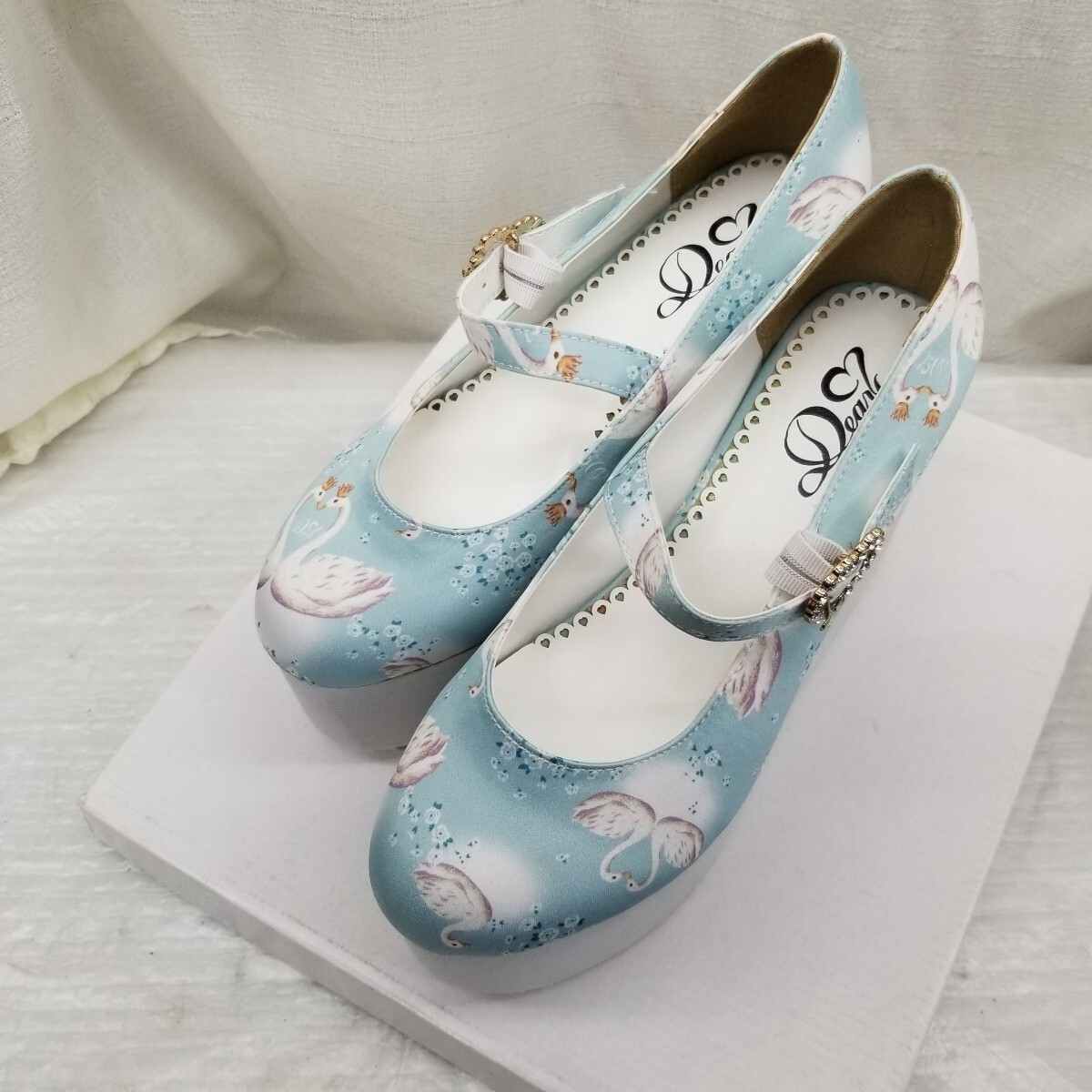 3702 24.5cm ヒール10.5cm スワン柄 newlyme 夢展望 ニューリーミー パンプス