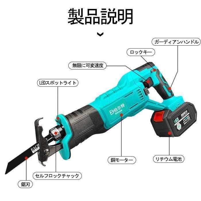 充電式マルチソー 超大出力 電動ノコギリ 家庭用 充電式 庭木 女性 レシプロソー セーバーソー 万能ノコギリ 98Vリチウム電池 充電器付き