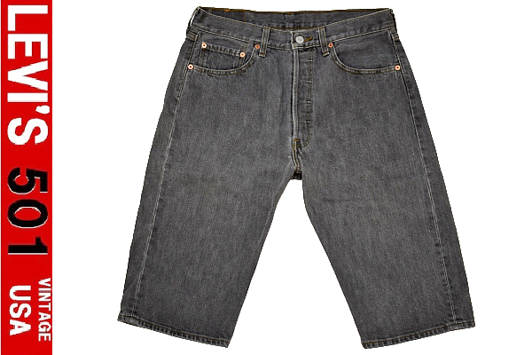 501-1444★美品★LEVI'S リーバイス 501-06★2002年 先染め ブラックデニム ハーフ ショート パンツ ジーンズ W-32