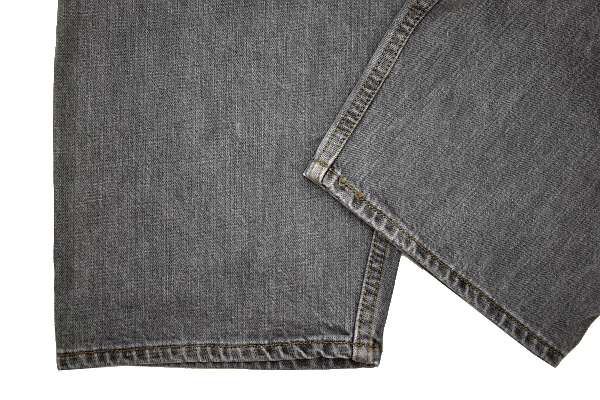 裾の幅を計測。その際、縮みや、シワを考慮して、ピンと伸ばした状態で計測しています。