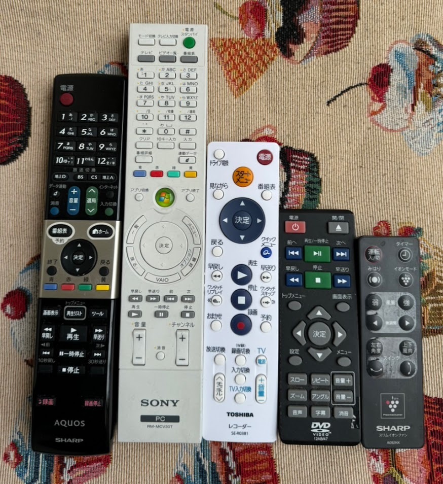 【ジャンク】 リモコン 5点セット ★ TOSHIBA SE-R0381 / SONY RM-MCV30T / SHARP AQUOS A092KK スリムイオンファン 【商品説明必読】