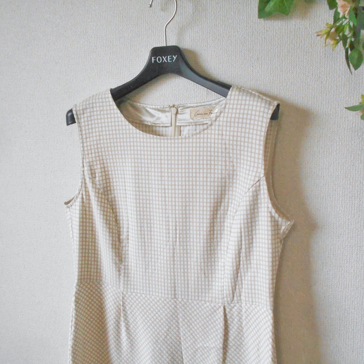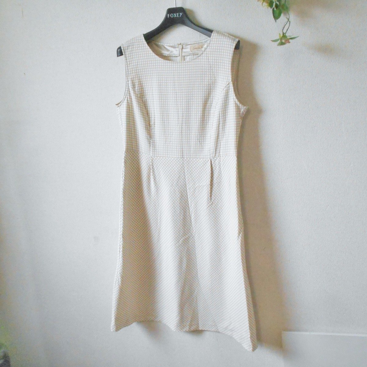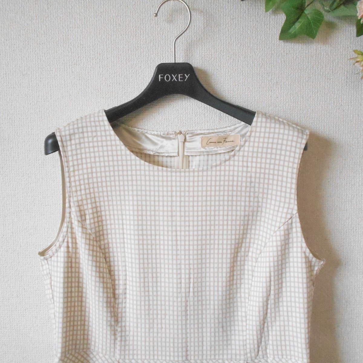 【ポイント】コムアンファムのノースリーブワンピースになります。お色はオフホワイトベースでベージュの格子柄が全体に入っています。