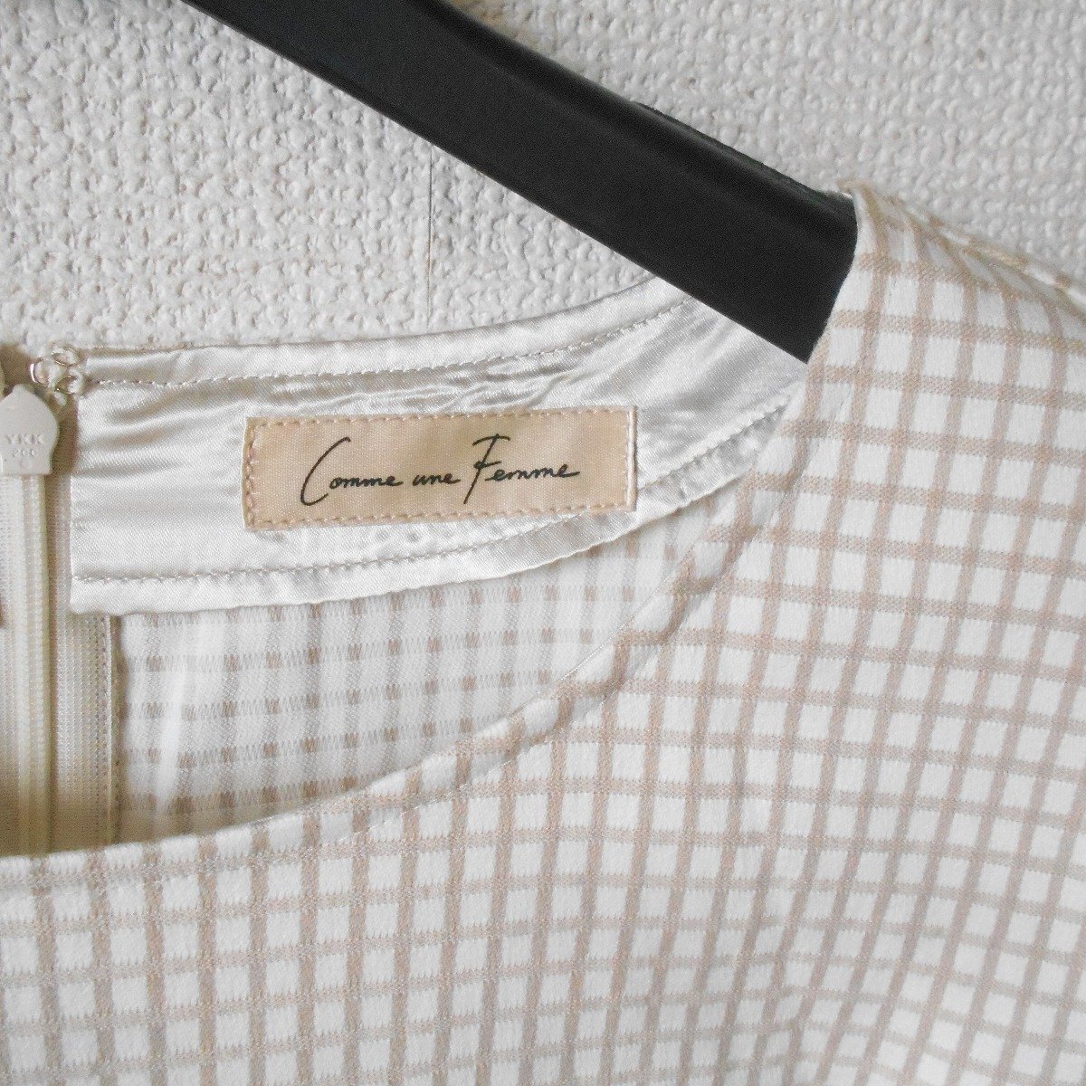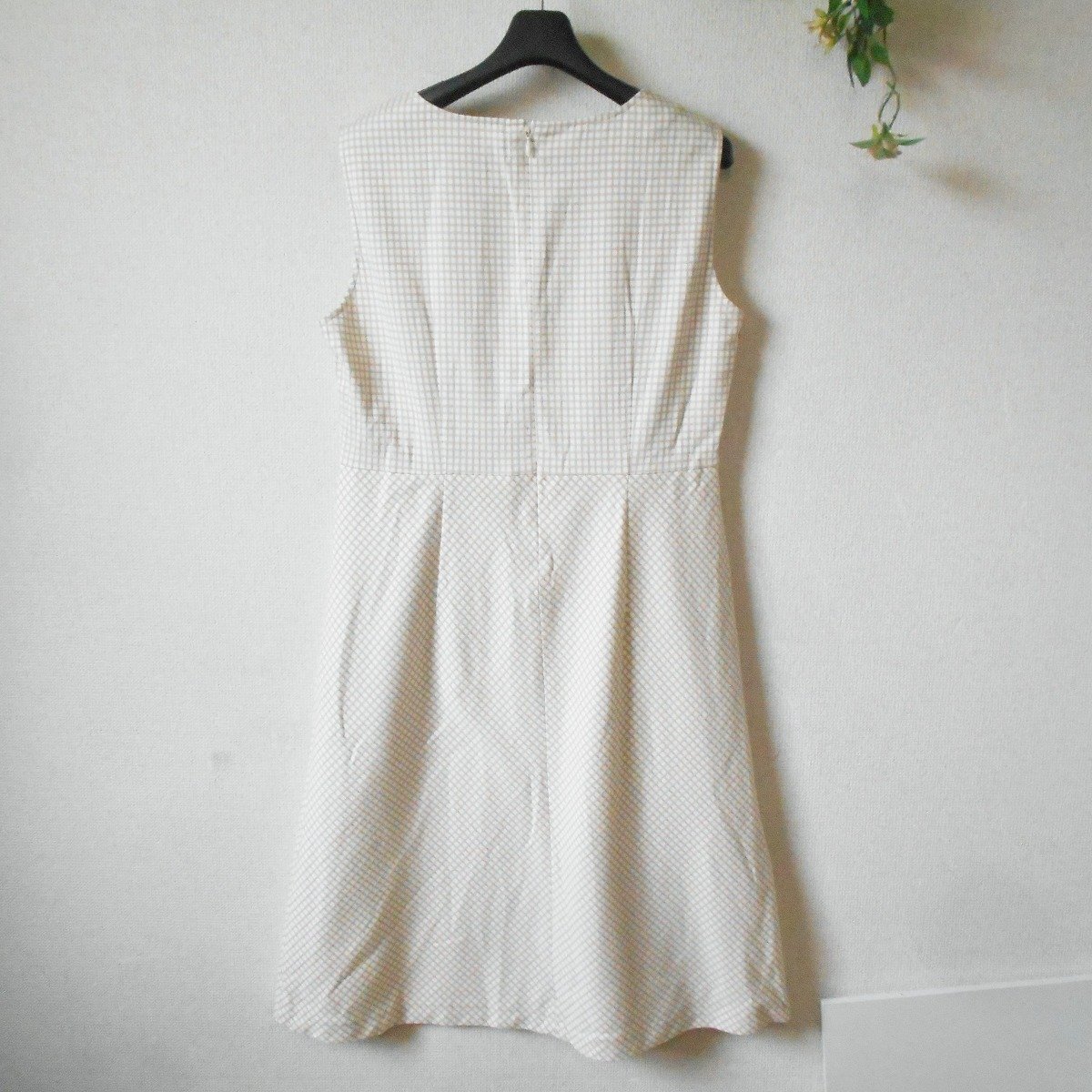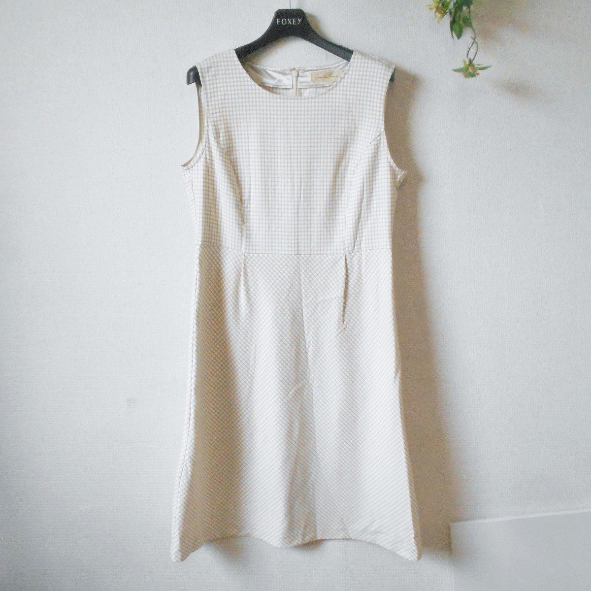 【ポイント】コムアンファムのノースリーブワンピースになります。お色はオフホワイトベースでベージュの格子柄が全体に入っています。