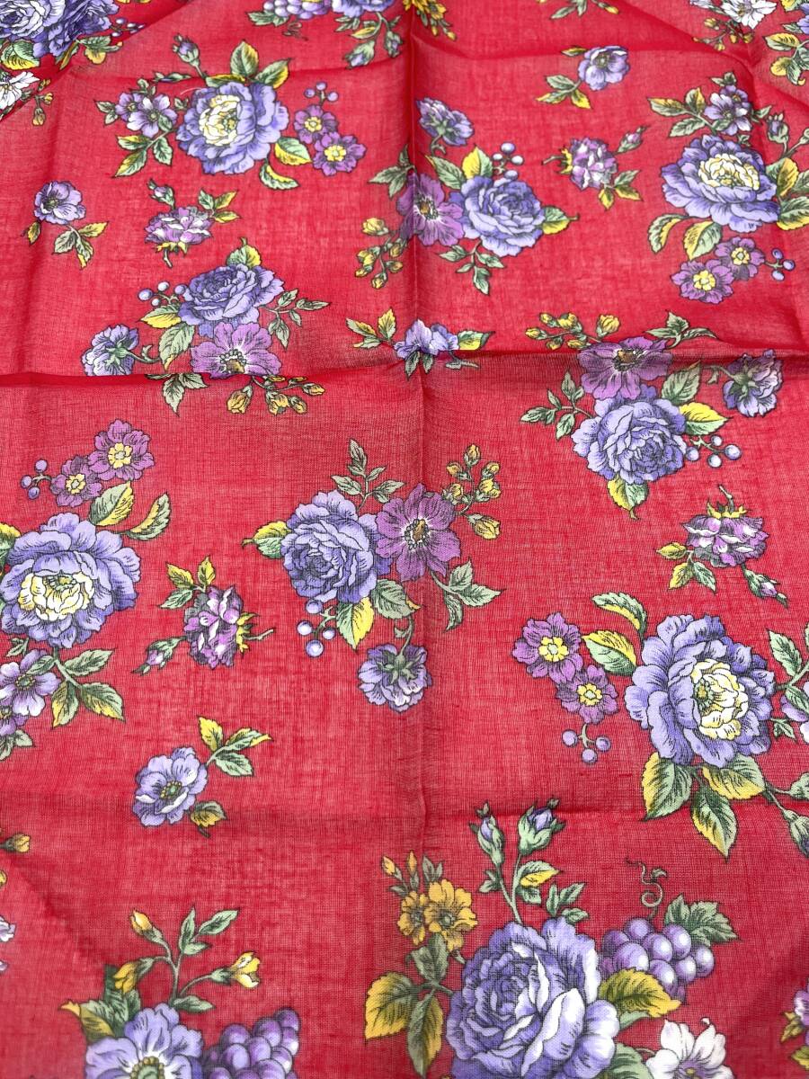 ハンカチ バンダナ 花柄 フラワー レッド×パープル×グリーン 縁ブラック コットン 綿100%