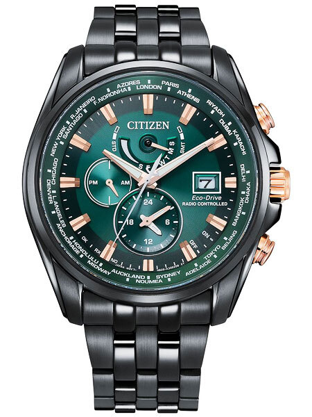 仕様:クオーツ、エコドライブ(ソーラー)、電波受信機能、サファイアガラス、アラーム、ワールドタイム、パーぺチュアルカレンダー、20気圧防水、逆輸入品
