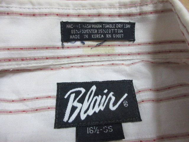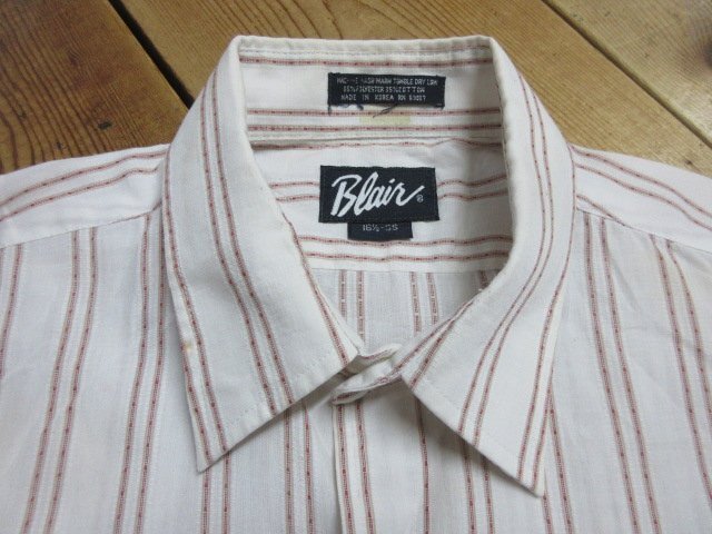 80s vintage 半袖シャツ L Blair ストライプ KOREA製 ヴィンテージ アメカジ古着 sy3200