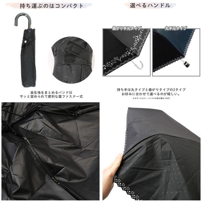 商品説明 | ・・雨の日も晴れの日も使える♪晴雨兼用の折りたたみ傘。(親骨50cmタイプ) ・傘生地の内側にはブラックコーティング加工を施し、UPF50+、UV99.9%以上カットの完全遮光タイプ! ・親骨の一部に弾力性があり折れにくいグラスファイバー素材を使用。さらに黒い塗装を施した黒骨を使用しているから、サビにくい◎ ・開閉時に爪や指を挟むのを防止するはじきカバー付き。 ・傘生地をまとめるバンドは、サッと留められて便利な面ファスナー式。 ・持ち手は丸タイプと曲がりタイプの2タイプあり、お好みに合わせて選べるのが嬉しい。(※カラーにより持ち手の色が異なります。) ・上品な印象を演出してくれるデザインをラインナップ。フォーマルシーンでも活躍。 |