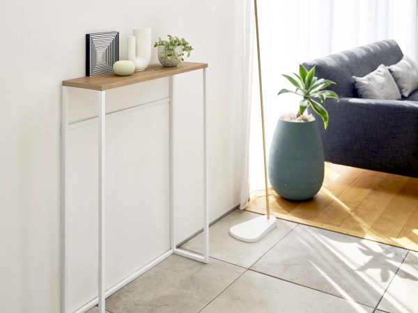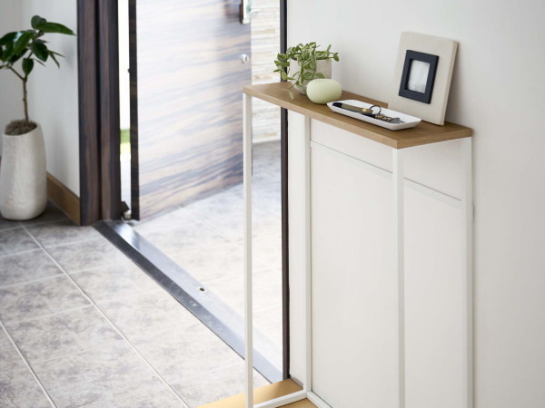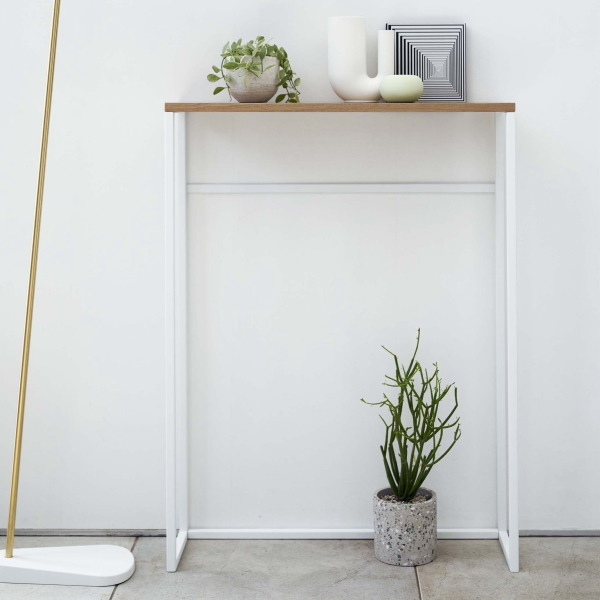 コンソールテーブル(ホワイト) エントランスやリビングでちょっとしたスペースで活躍するコンソールテーブル。 場所を選ばず置く事ができる細身のデザインが人気です。 美しい木目の天板にはキートレーやちょっとした置物を置くと素敵ですよ。 小物を引っ掛ける事ができるフックが4個付いていますので、玄関先では靴ベラや傘などを引っ掛ける事が出来て便利ですね。 【サイズ・素材など】 ■幅600×奥行185×高さ805mm 約3.7kg (内寸:幅570×奥行165×高さ785mm) ■本体:スチール(粉体塗装) / 天板:天然木化粧繊維板(ラッカー塗装) ■天板耐荷重:約5kg / バー耐荷重 約1kg ■組み立て式(プラスドライバーを別途ご用意ください) 【送料・その他】 ■送料無料(北海道¥1000、沖縄、離島は別途見積り) ■発送まで2.3営業日を頂いております。(土日祝は休業日です) 【その他・必ずご確認下さい。】 *お支払いいただく金額は落札金額+配送料金となります。 *商品の直接取引・送料着払いには対応しておりませんのでご了承ください。 *初期不良や運搬中の破損などは交換対応となります。 *商品が到着しましたら、不良、破損がないかご確認ください。 万一破損等ございましたら、3日以内にご連絡ください。お時間がたちますと、交換等できない場合がございます。 *当店の商品はすべて新品商品です。 *土日祝は休業の為、発送やご連絡ができません。 よろしくお願いします。 |