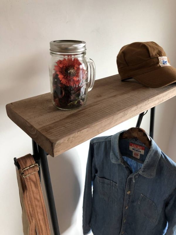 ※商品説明必読・発送日注意※ 2D-MN-60  ハンガーラック  アイアン インダストリアル フック付き コンパクト 古材 収納棚