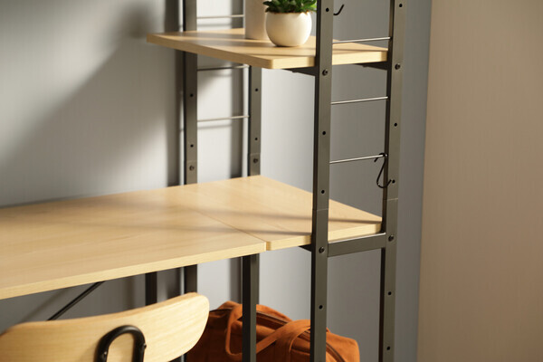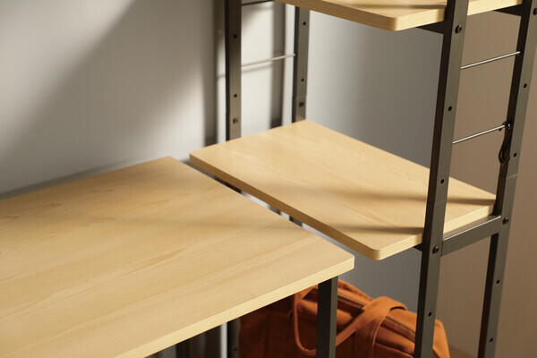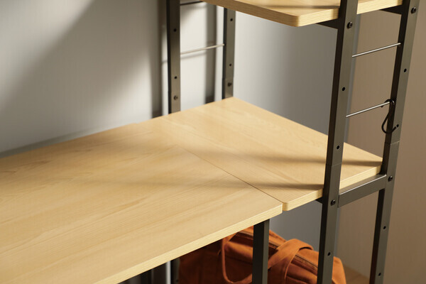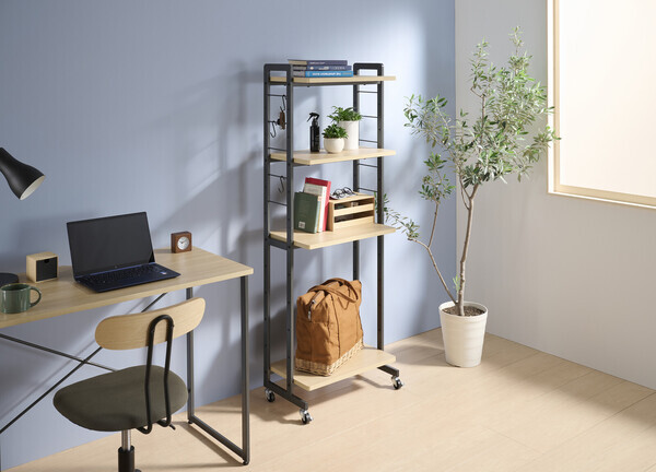 淡いブラックのフレームに使いやすい機能をデザインとして落とし込んだファニチャーシリーズ。 落ち着いた木目柄と合わせる事で成立するモダンなインテリアです。 サイドフレームをスリムなデザインにすることで、圧迫感の無い佇まいを実現したキャスター付きラ ックです。 ディスプレイ等の使用だけでなく、デスクと組み合わせて使用ができたりとマルチ性にも長けていま す。 棚板は115mmピッチで高さ調整が可能となっております。 天板は傷や熱、汚れに強いメラミン化粧板を採用しております。 移動にも便利なキャスター付きで、お掃除の際だけでなくお部屋のレイアウト変更も楽に行っていただけます。 S字フックを3個付属しており、サイドフレームの細い丸貫に掛けてご使用いただけます。 ・キャスター:ストッパー付2個・ストッパーなし2個 ・棚は115mmピッチで高さ変更が可能です ・S字フック3個付属 W530×D300×H1465mm 棚板サイズ:W500×D300mm 約13kg 耐荷重/全体:40kg棚:10kg 組立品 ■生産地:中国 ■素材・成分:棚板:MDF(18mm厚)メラミン化粧板貼り フレーム:スチール(15×30mm)粉体塗装お届け日指定 ご注文より4?5日先を目安にご指定下さい。 時間帯指定 「午前」「午後」の時間帯がご指定頂けます。 ※郡部および運送会社の営業所から遠方の場合は、 時間帯指定を承ることができません。 ************ 大型家具の場合 配送先地域によっては発送後8~10日ほどかかる場合があります ************ |