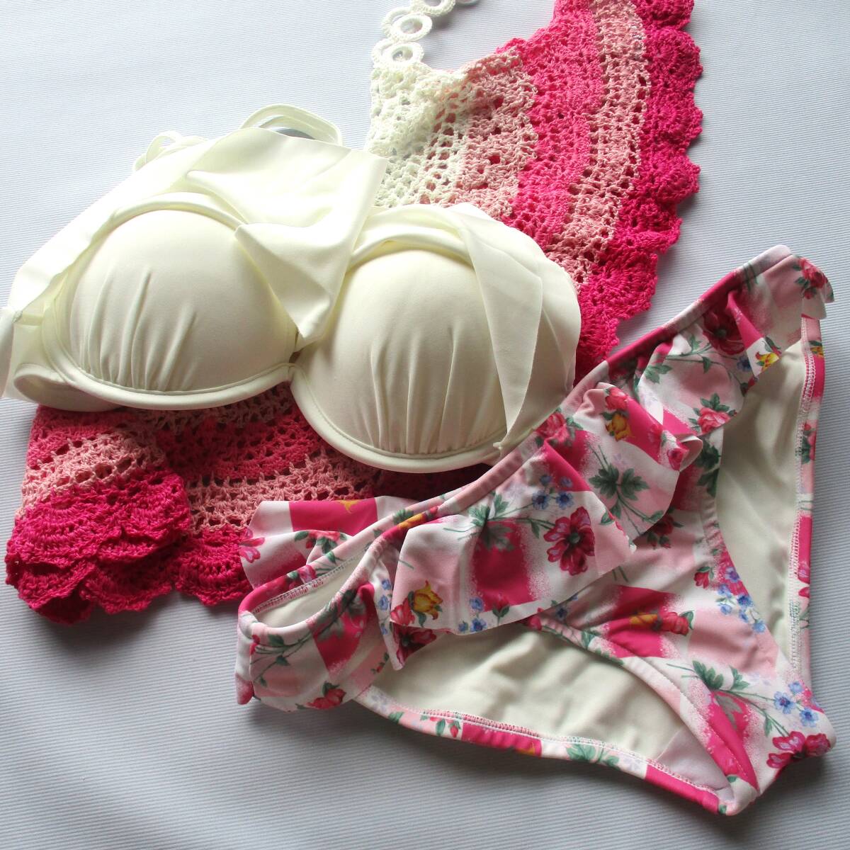 グラデーションクロッシェ×花柄 3点セットです。