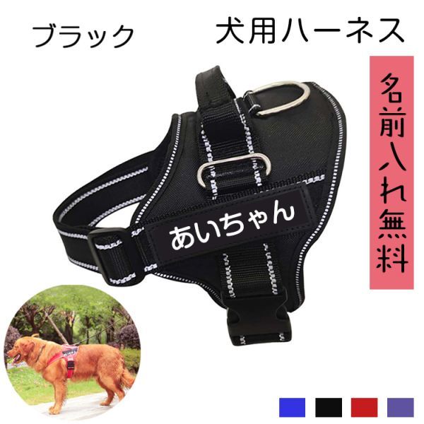 (ブラック)犬のハーネス 無料ネーム入れ 名前入り胴輪 犬用 ハーネス おしゃれ おすすめ 小型犬 中型犬 大型犬 超大型犬 名入れ ネームタグ