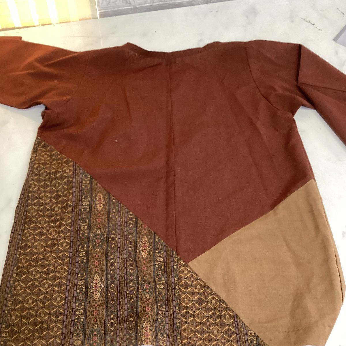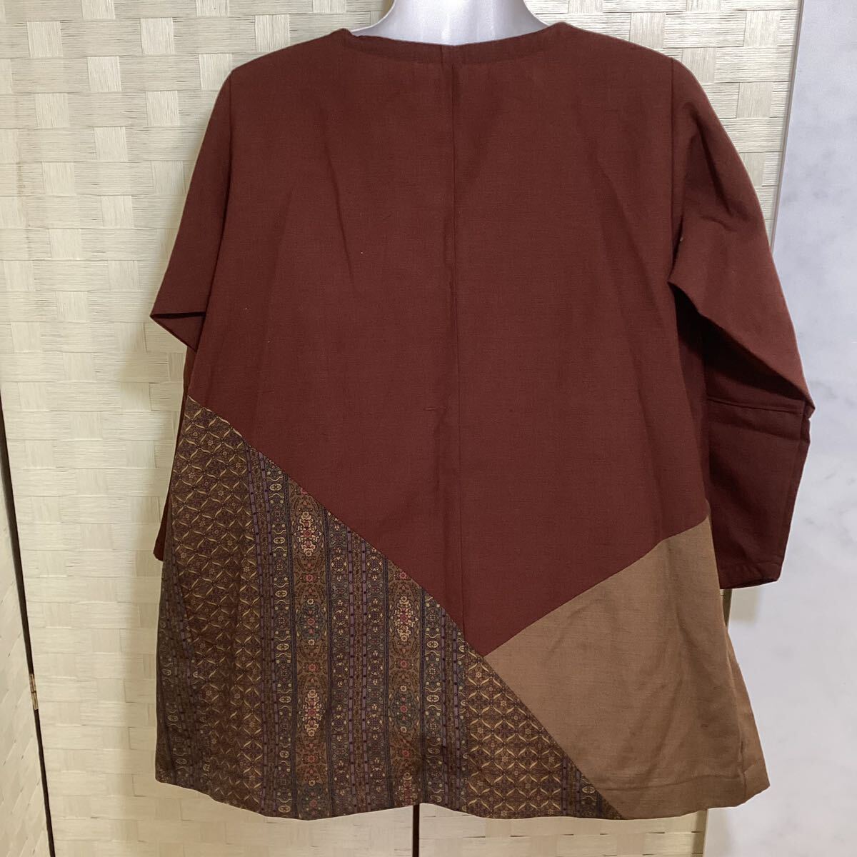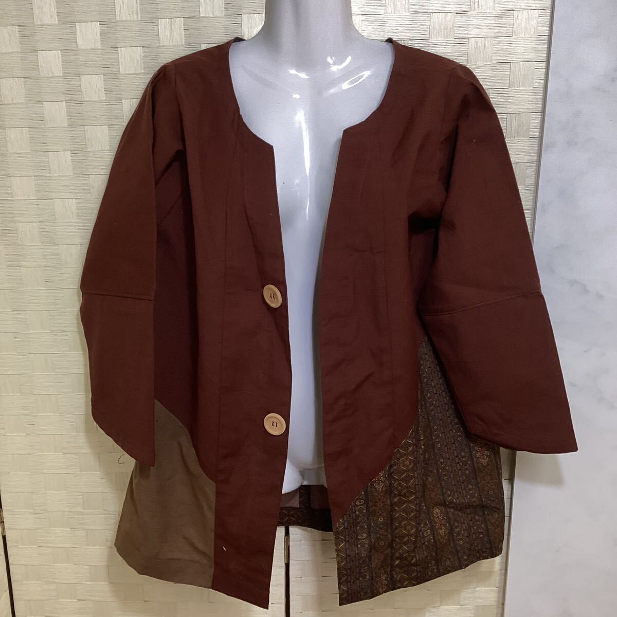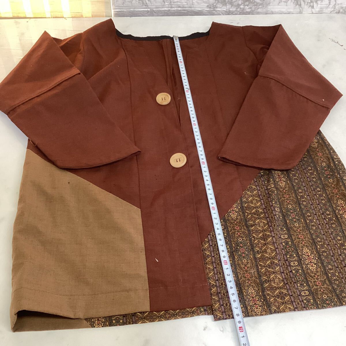 羽織り ハンドメイド 飾りボタン ブラウン系 花模様 モダン オシャレ M112