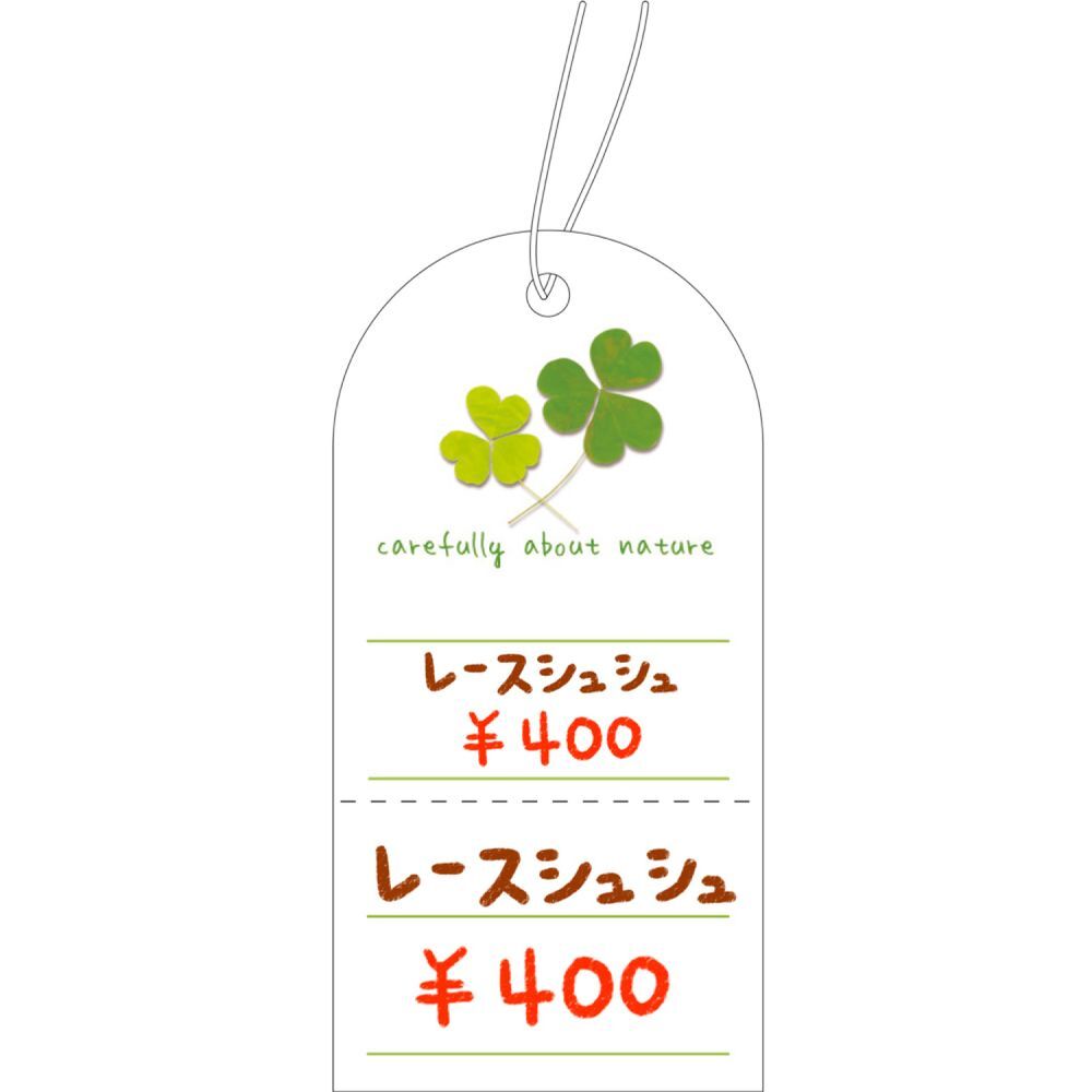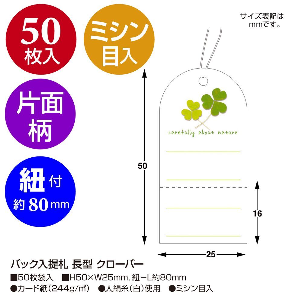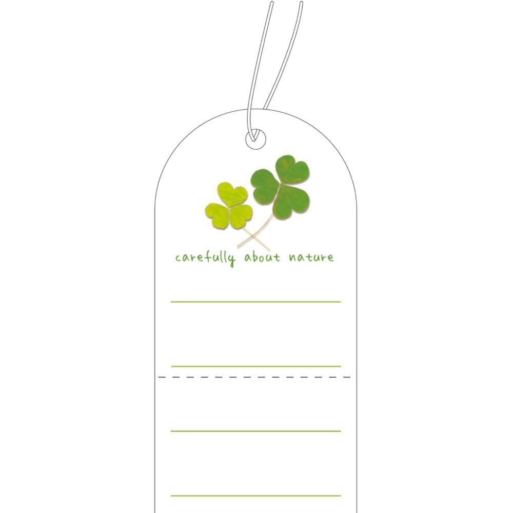 クローバー柄に「carefullyaboutnature」文字と罫線が入ったかわいいデザインの提札です。