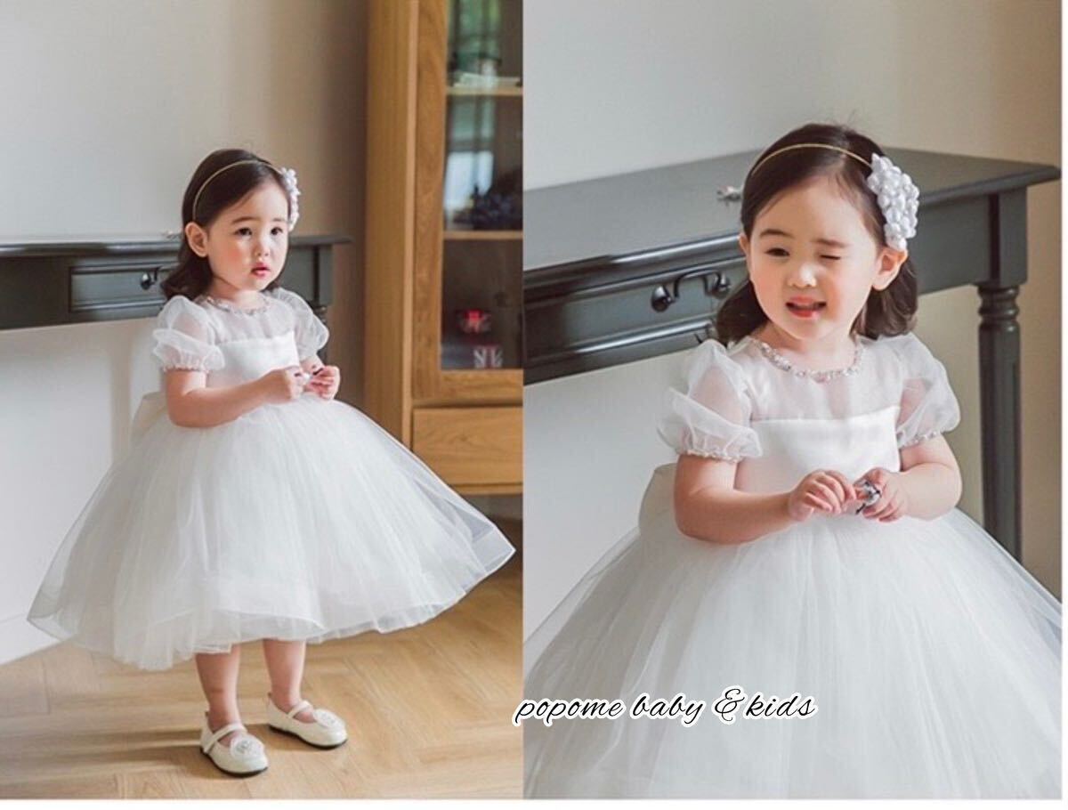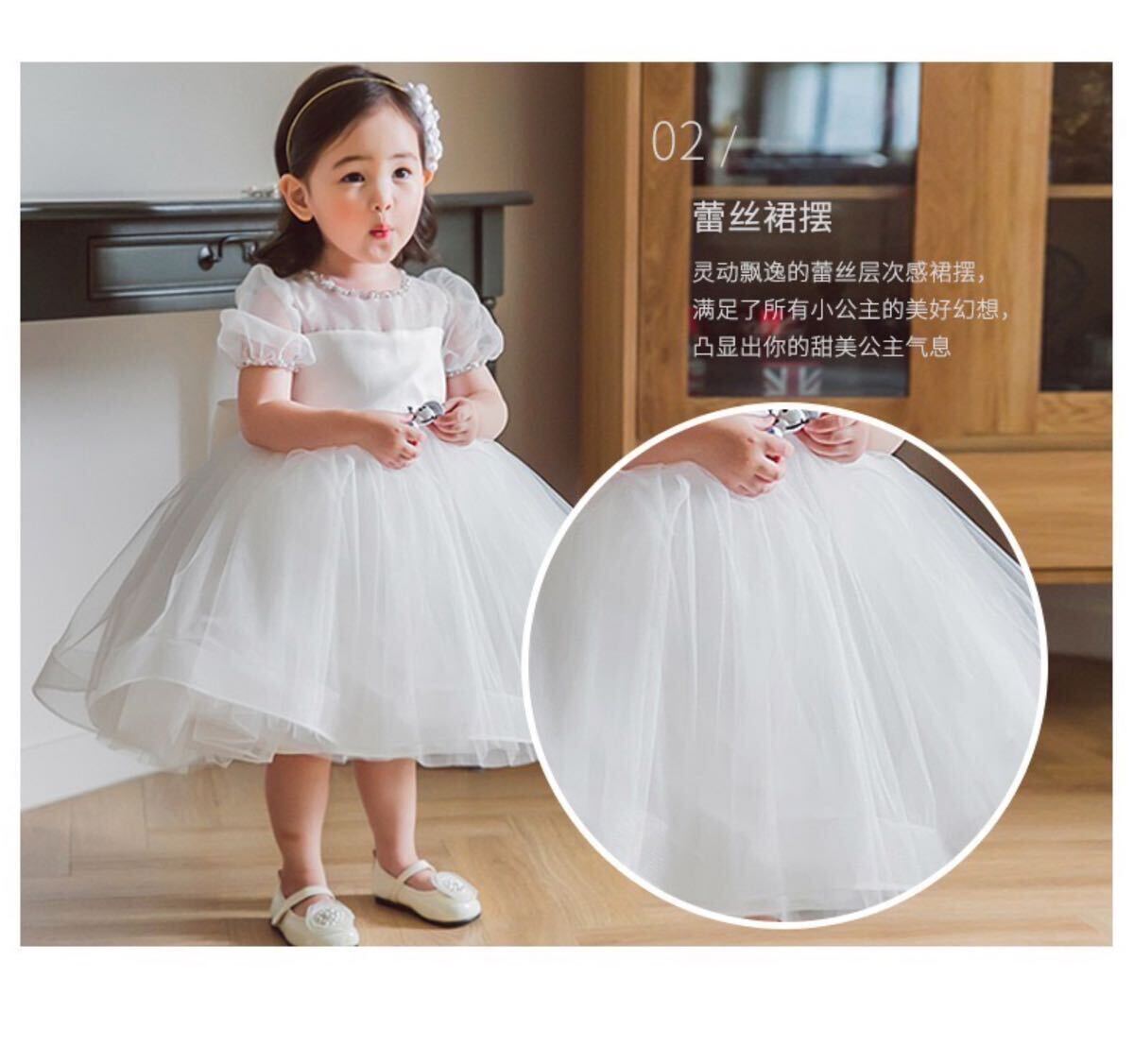 バースデーや結婚式、お誕生日、七五三の撮影に最適です。立体花柄のフリルがポイントで、スカートにはふんわりとしたチュールが重なっています。