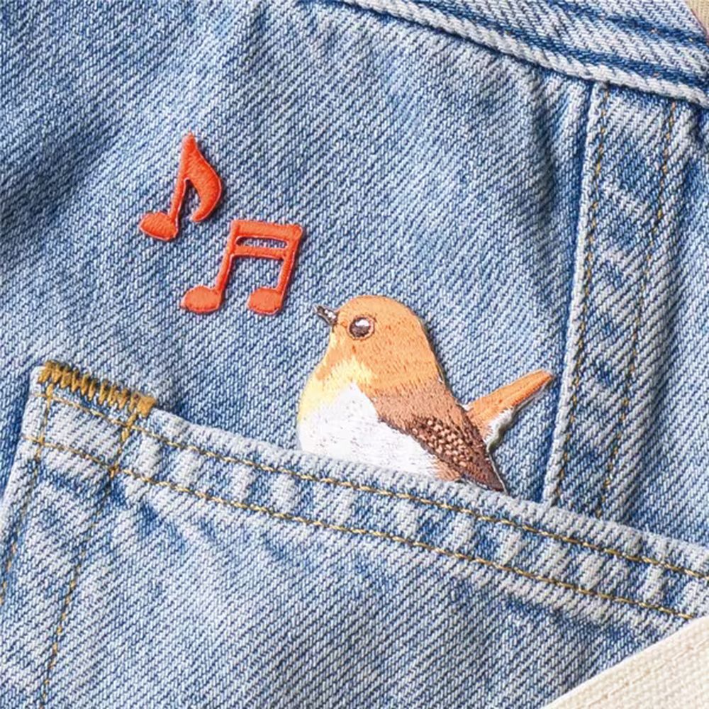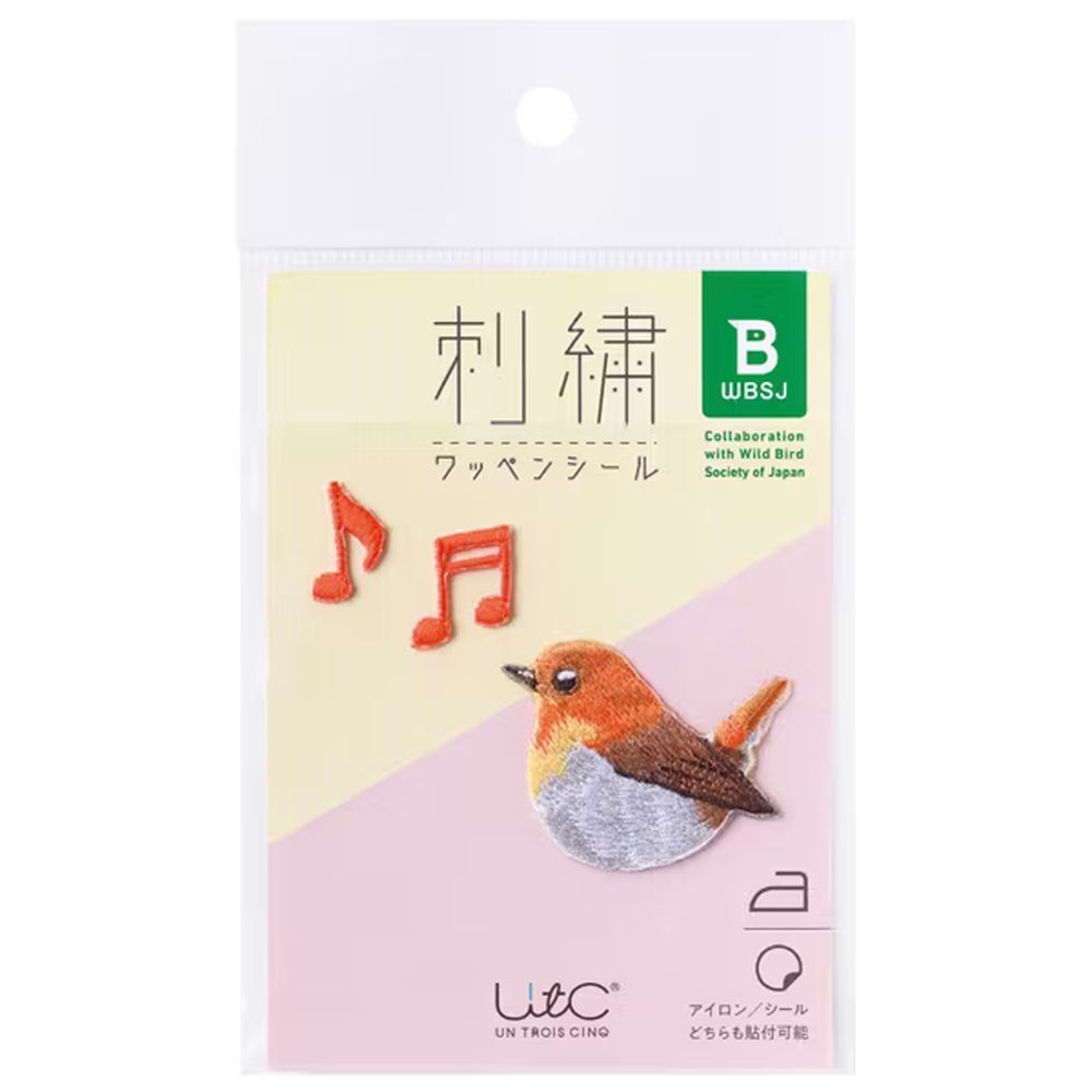 美しい鳴き声を持つ日本三鳴鳥の「コマドリ」と、そのさえずりをイメージした「音符」を繊細な刺繍で丁寧に表現しました。