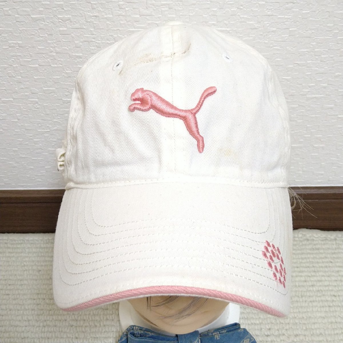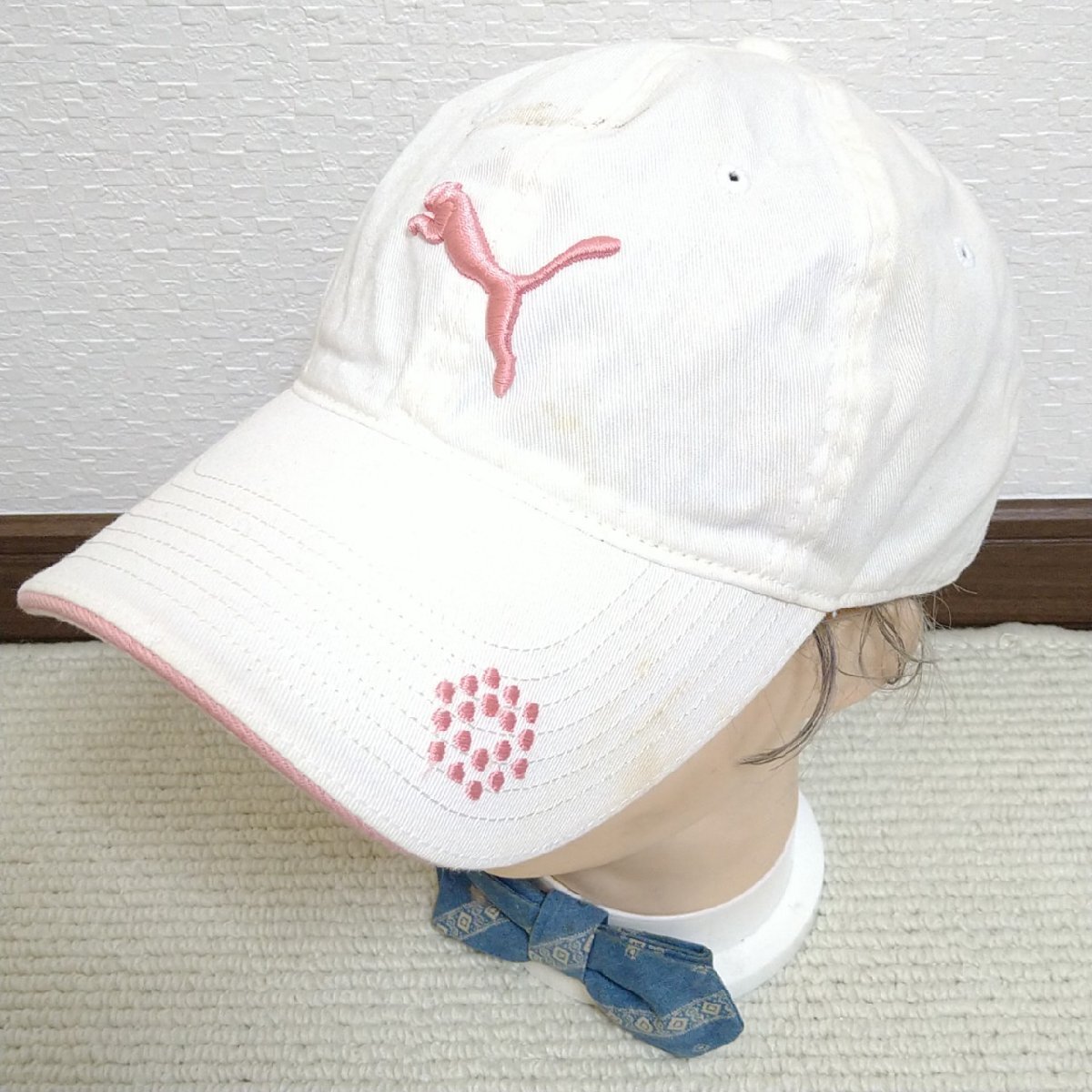 (^w^)b PUMA プーマ ロー ベースボール ゴルフ スポーツ キャップ CAP 帽子 ヘッド ウェア 日除け ロゴ 刺繍 白 ピンク M C1053wE