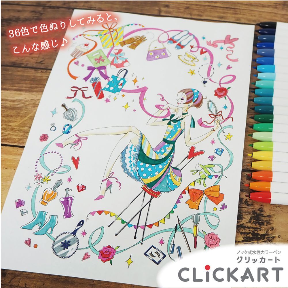 簡単にカラフルに書ける、新インクを搭載した36色のノック式水性カラーペン『クリッカート』