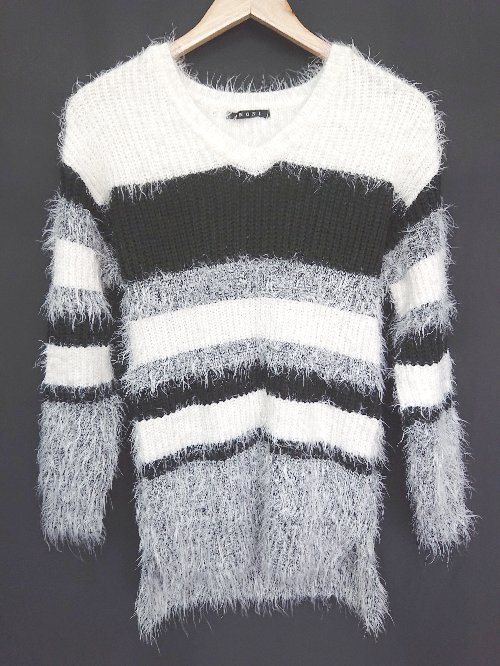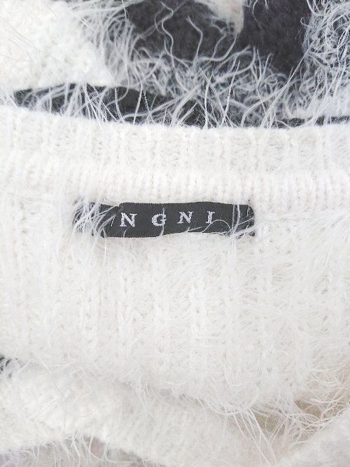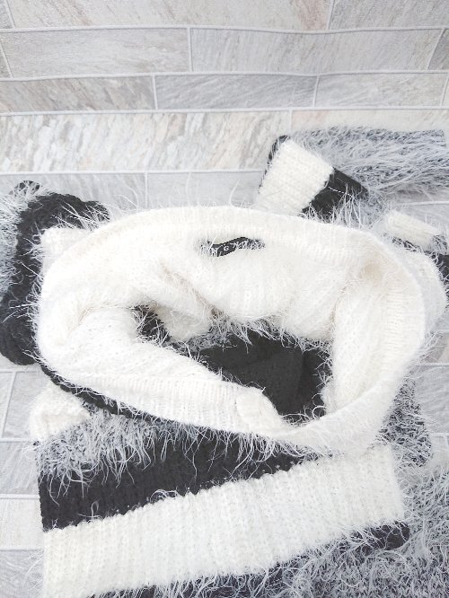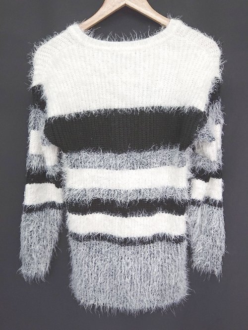 ◇ INGNI イング ボーダー シャギーニット 長袖 セーター サイズM ホワイト ブラック レディース P