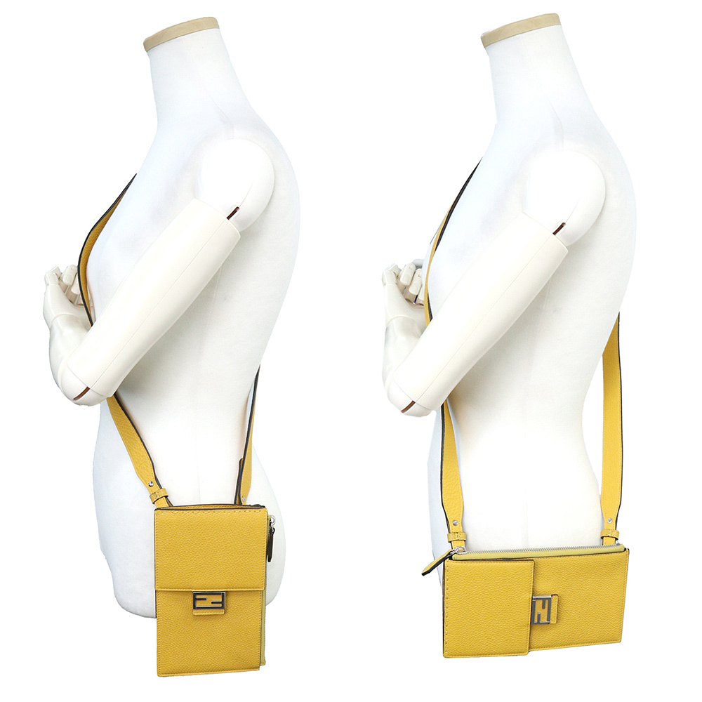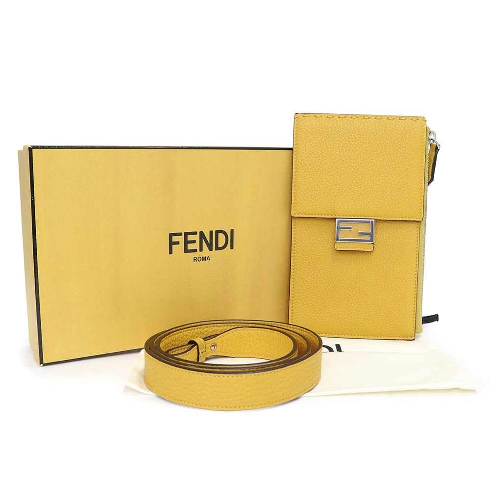(新品・未使用品)フェンディ FENDI フォンホルダー ポーチ 携帯 スマホ iPhoneケース ショルダーバッグ ローマンレザー 黄 7AS034 箱付