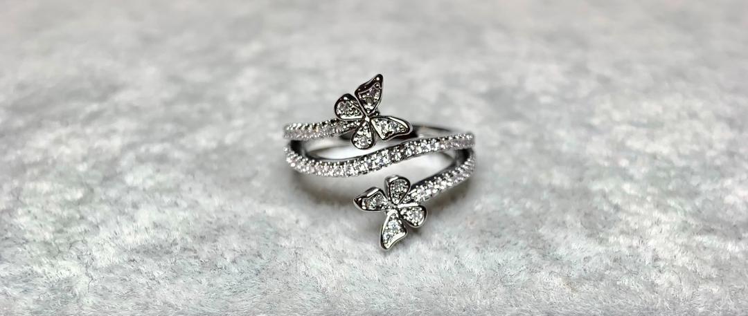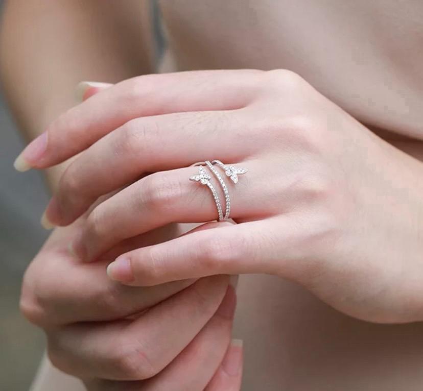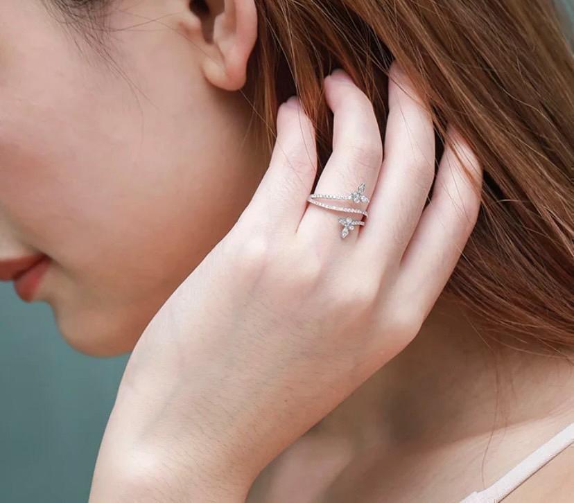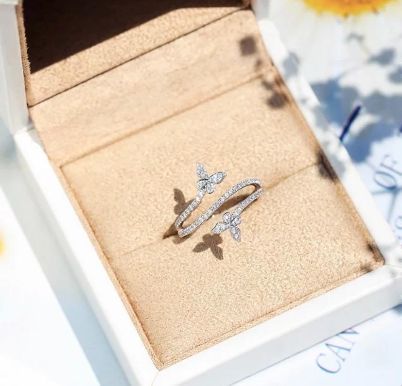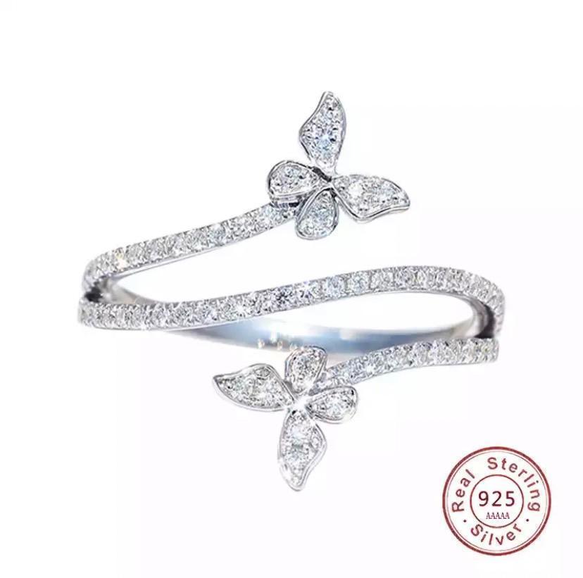 620 シルバー バタフライ リング s925 czダイヤモンド 韓国 ジルコニア ジュエリー アクセサリー ストーン 結婚式 ドレス おしゃれ 指輪