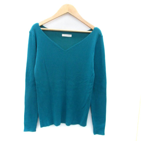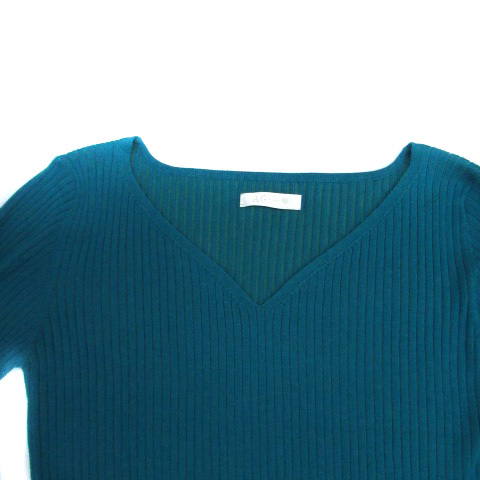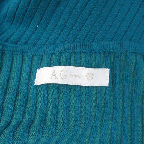 エージーバイアクアガール AG by aquagirl リブニット カットソー Vネック 長袖 無地 M 青緑 ブルーグリーン /HO42 レディース