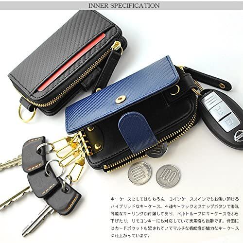 【日本一優勝記念SALE】【送料込み】【数量限定】【新品】【キーケース】カーボンレザー■牛革■オールインワン■4連キーケースウォレット