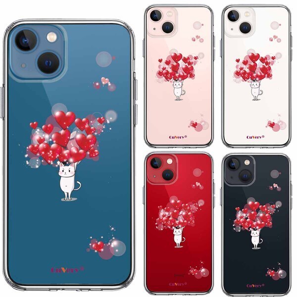 iPhone13 ケース クリア猫 ネコ にゃんこ ハート いっぱい スマホケース 側面ソフト 背面ハード ハイブリッド