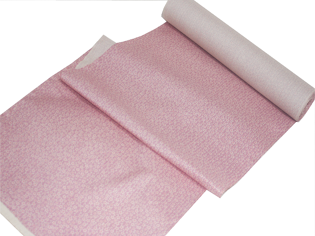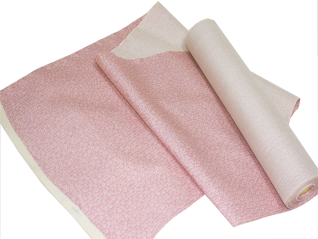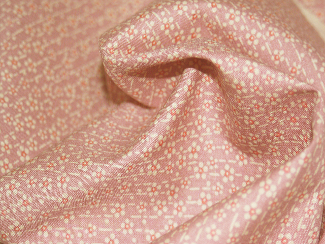 反物 混紡 モスピンク色地に小花を染めた 小紋 未使用・未仕立て  良品