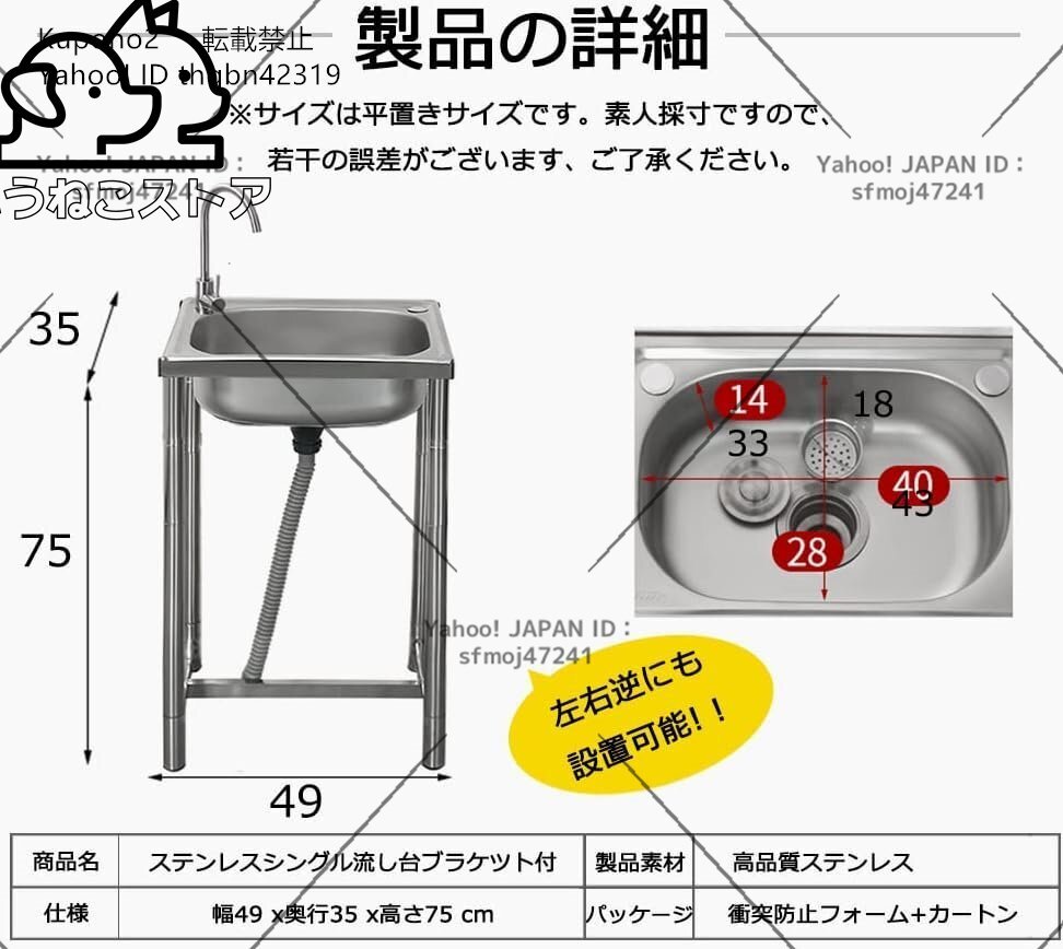 商品詳細】 サイズ:(約)D35×H75×W49cm 重量:(約)4.2kg 素材:本体/ステンレス鋼 付属品:本体、排水ホースセット、冷水蛇口