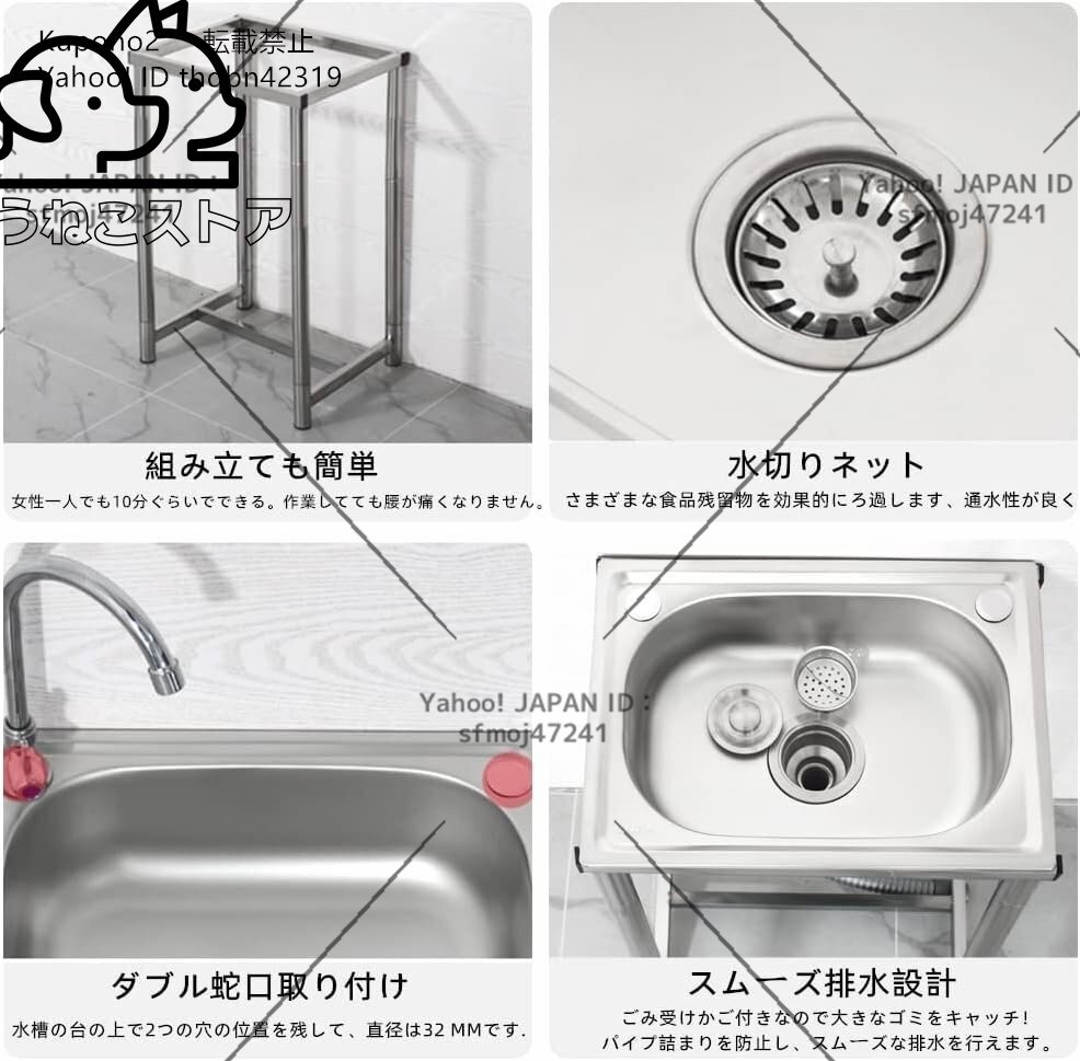 流し台 簡易式 ステンレス製 蛇口水栓付き シンク 水切り 屋外 キッチン用流し台 コンパクト 工具不要 ガーデンシンク 工場 アウトドア 農