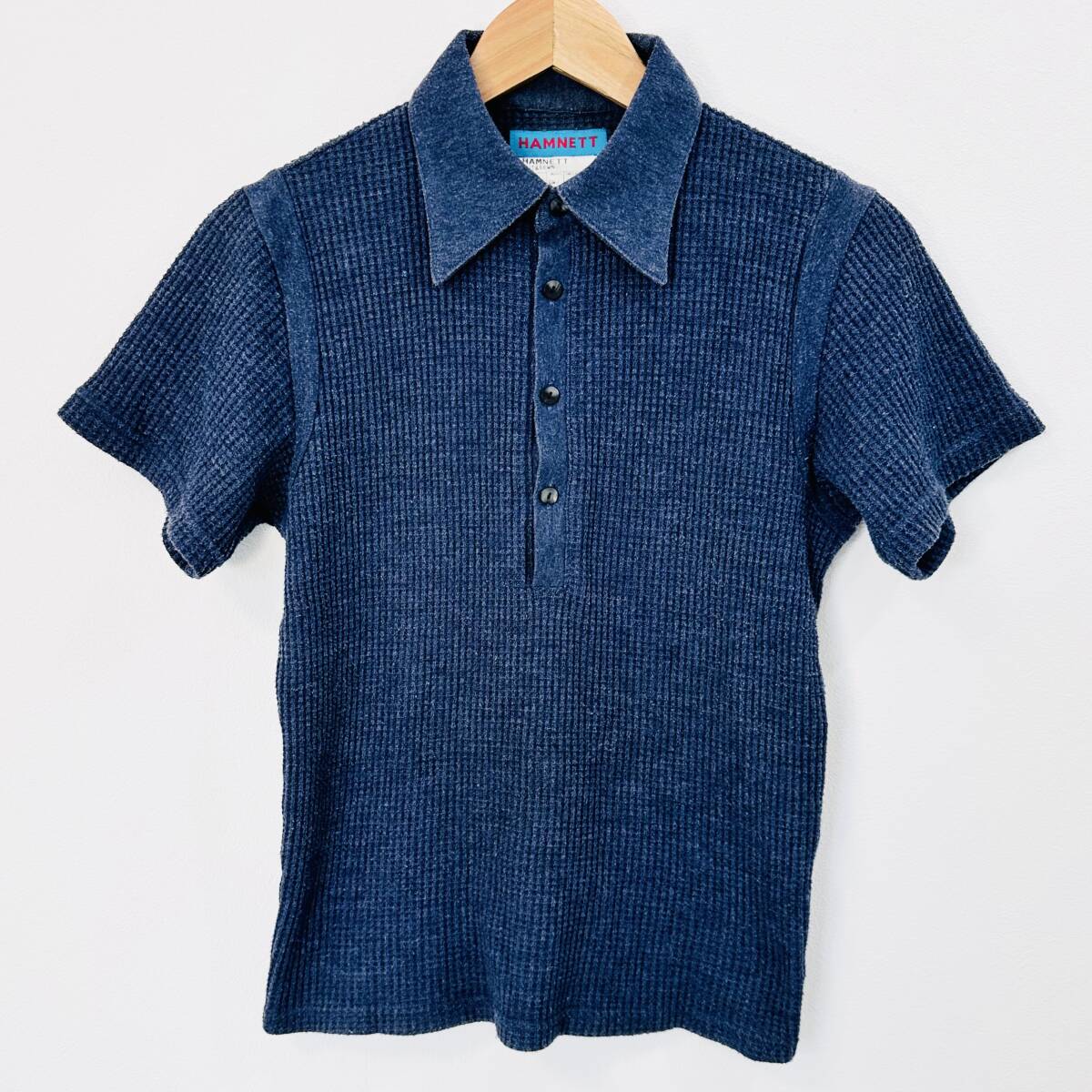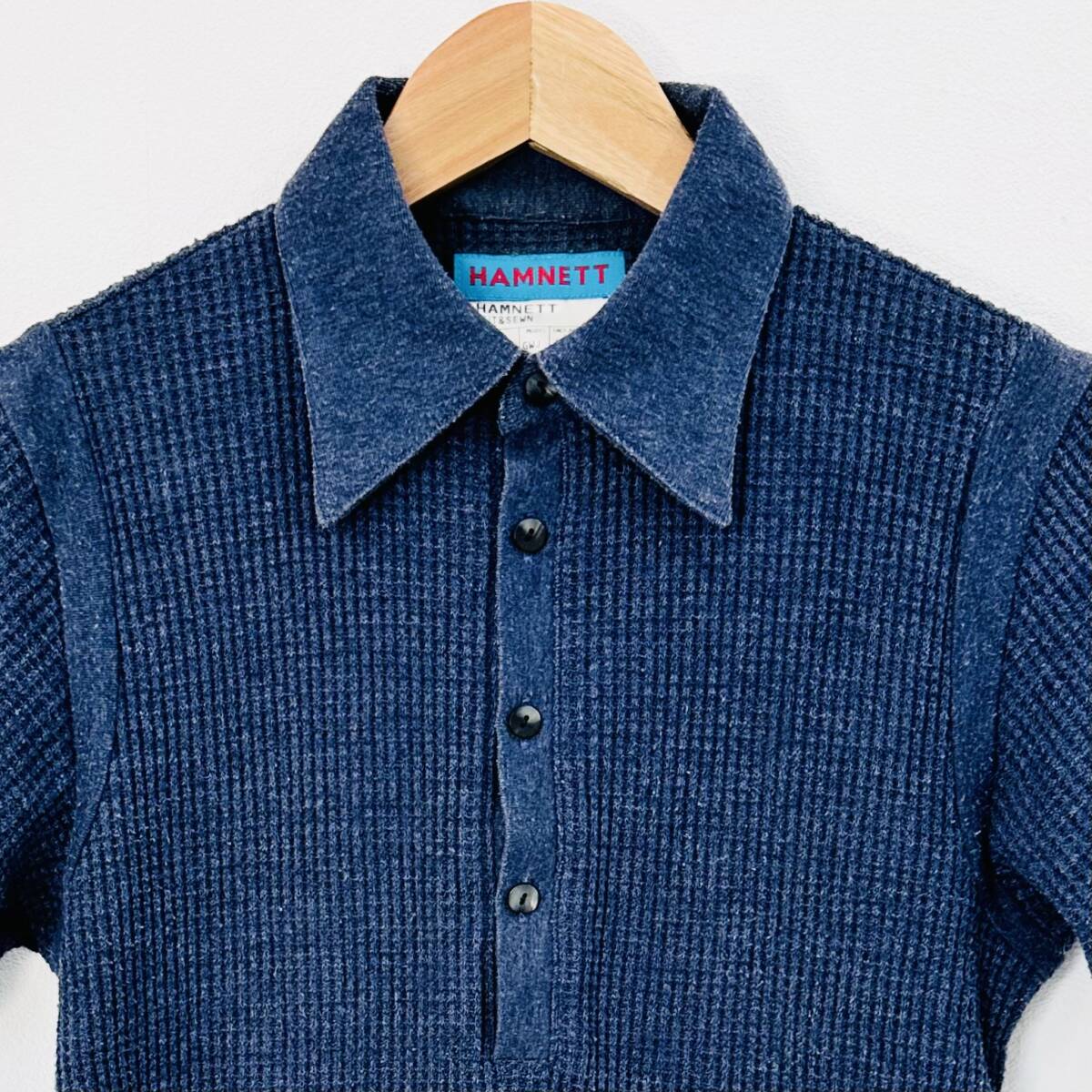 f47ii HAMNETT(ハムネット) サイズM ポロシャツ 襟付き ハーフボタン 半袖シャツ ネイビー系 メンズ 日本製