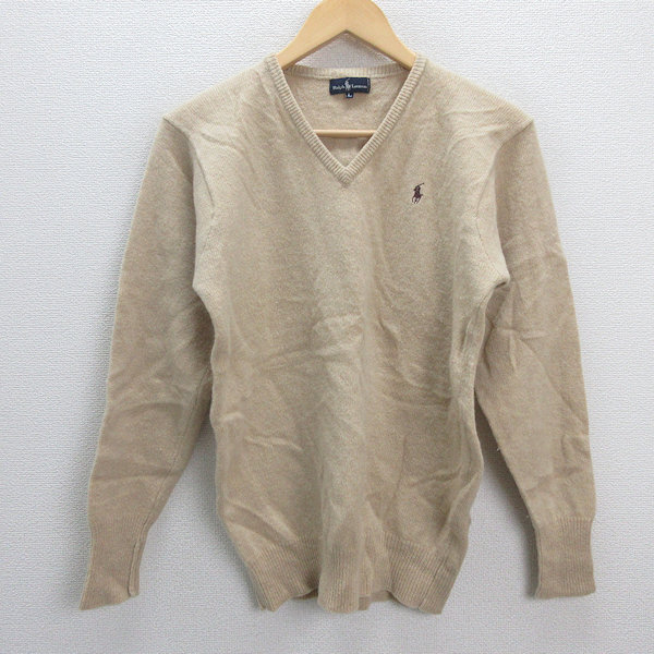 H■ラルフローレン/Ralph Lauren ウィメンズ Vネックニットセーター【L】ベージュ/MENS■40【中古】