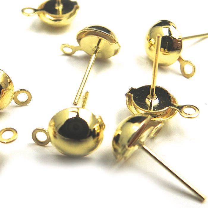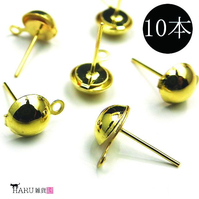 P-341 蓋付き ピアスピン ゴールド 10個 5ペア カン有 8mm 金 ポストピン ピアスポスト パーツ バックキャッチ HARU雑貨wz