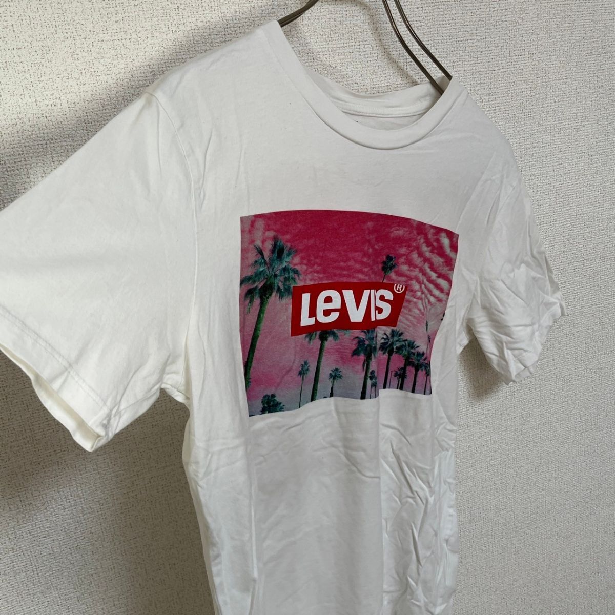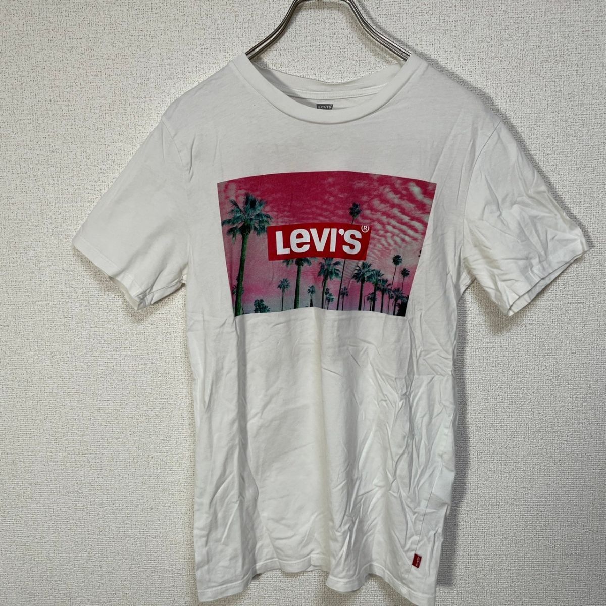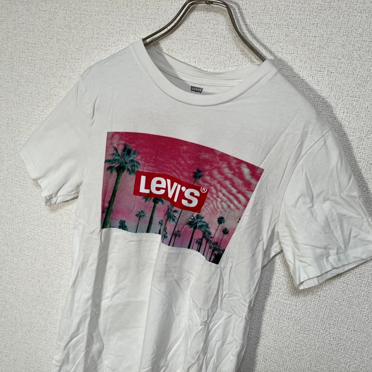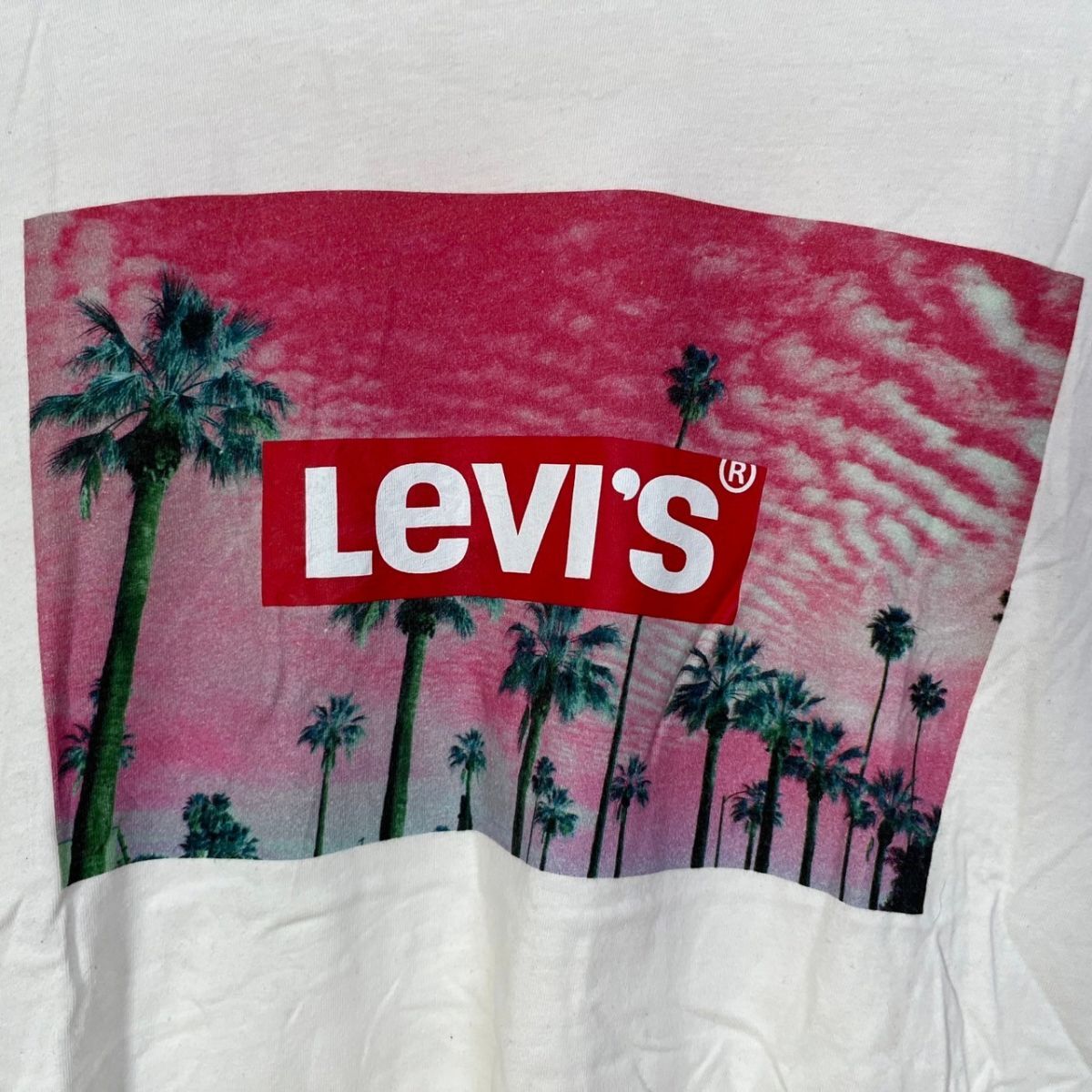 | 【リーバイス】半袖Tシャツ 白T デカロゴ ヤシの木 ピンク 夕日 D5 | |