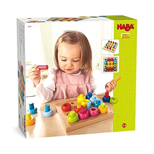「ハバ ペグ遊び にじいろリング 2202」▼4573343130278▼(商品説明)・8 色 2202・メーカー:HABA(ドイツ)・サイズ:盤18.5×18.5cm ペグ・リング8色各2ケ・メーカー推奨年齢:2才~・メーカー推奨は2才児のおもちゃですが、ペグと土台で遊ぶと1才頃から遊べます。・作りもハバらしくしっかりして美しい木成りです。長く遊べるおもちゃとしてお勧めです!説明 ■商品名:カラーリングのペグ遊び (HA2202) ■サイズ:盤18.5×18.5cm ■付属品・セット内容:ペグ・リング8色各2ヶ■メーカー:ハバ/HABA ■材質:ブナ ■対象年齢:2歳頃から ■生産国:ドイツ ■商品詳細: 〇メーカー推奨は2才児のおもちゃですが、ペグと土台で遊ぶと1才頃から遊べます。 〇作りもハバらしくしっかりして美しい木成りです。 〇長く遊べるおもちゃとしてお勧めです!