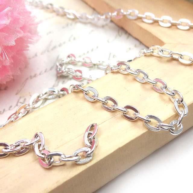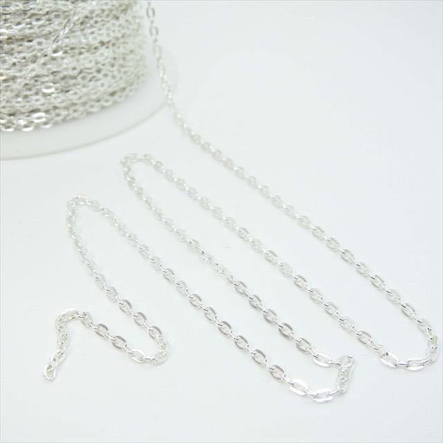 ホワイトシルバー チェーン 1m 切り売り as24 アズキ 小豆 銀 アクセサリー パーツ ネックレス 平あずき 小判 鎖 修理 延長 HARU雑貨tj