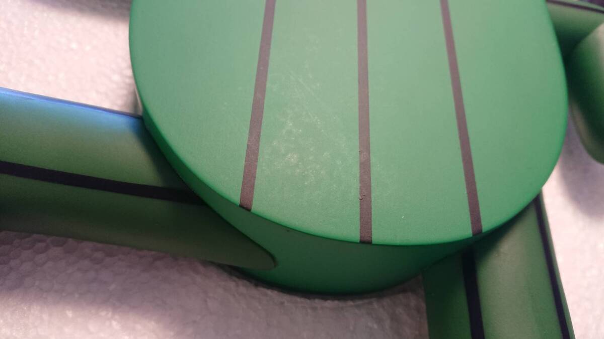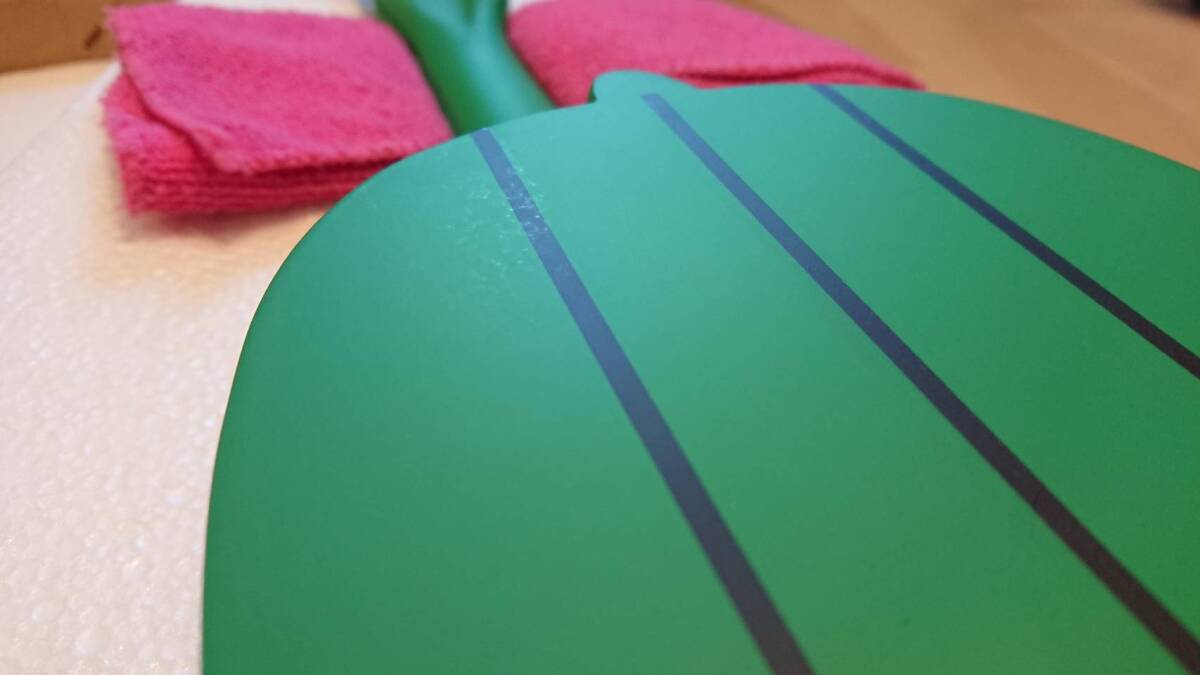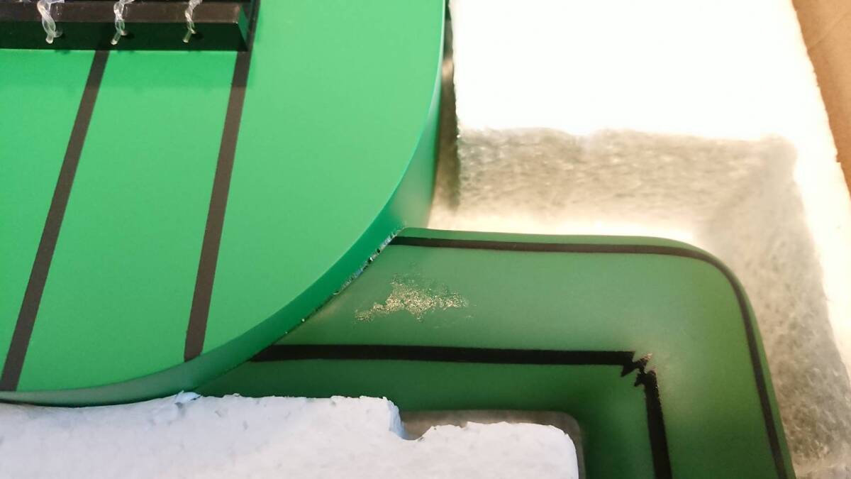 裏面にはうっすら発泡スチロールの跡がありますが、光を反射させてわかる程度で、表面にはありません。