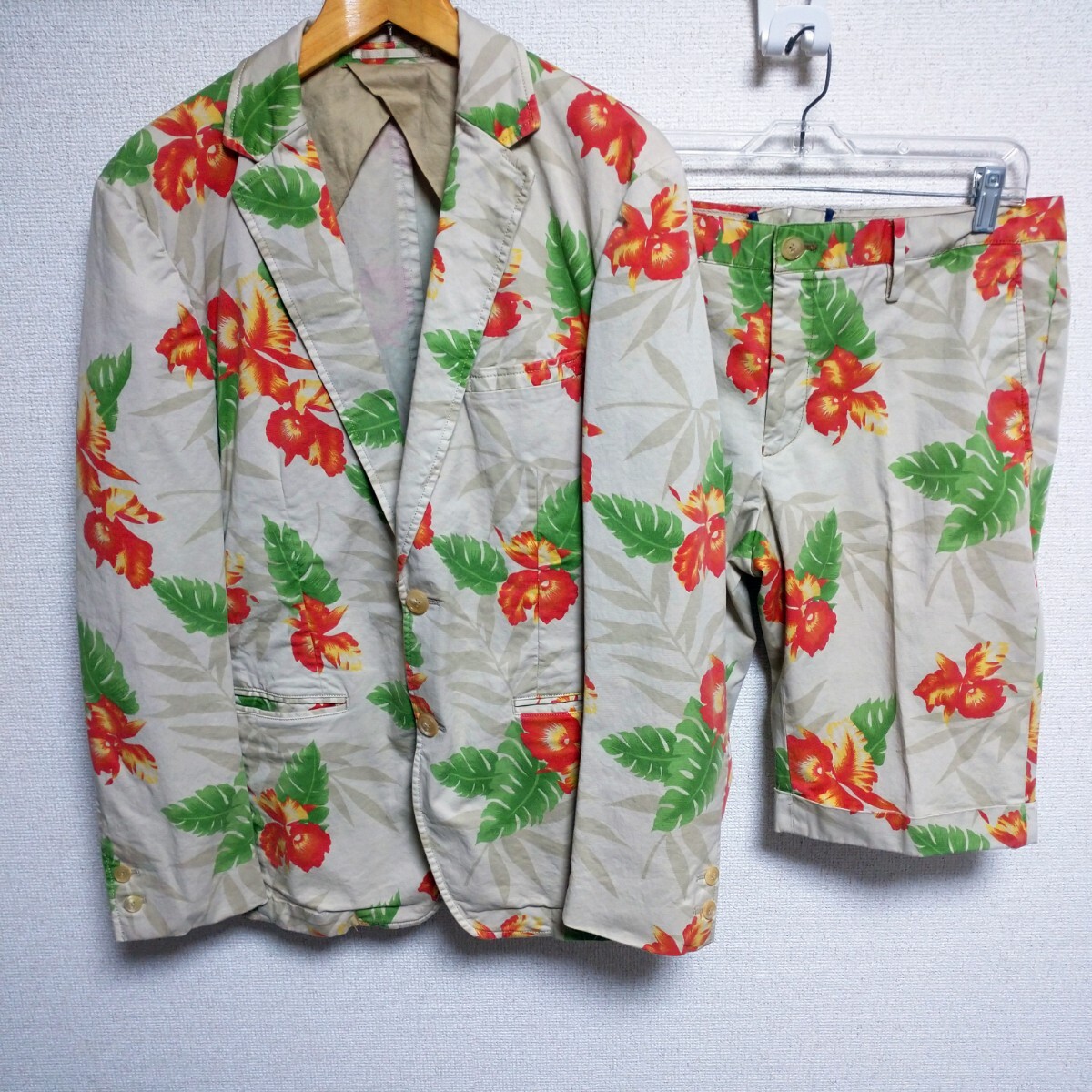 SHIPS シップス 花柄スーツ XL ボタニカル柄 総柄 夏用 セットアップ 短パン manifattura idea ttesuti スーツ上下セット