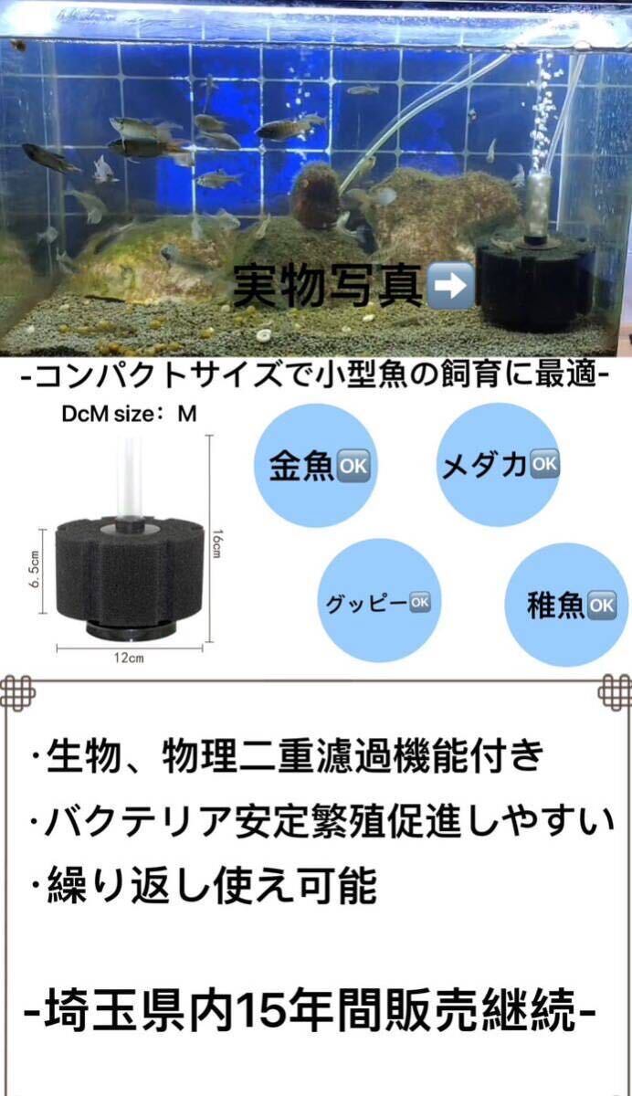 スポンジフィルターにより二重濾過(物理ろ過と生物濾過)、更にバクテリアに繁殖促進させ生物機能付きです。飼育容器をきれいで水質浄化抜群効果があります。