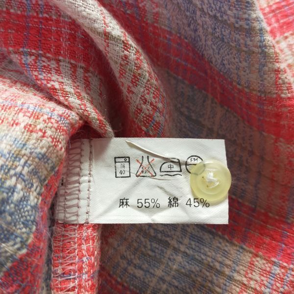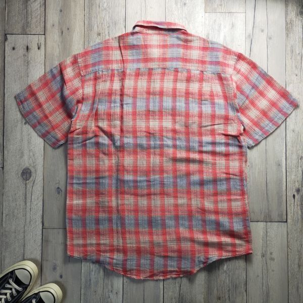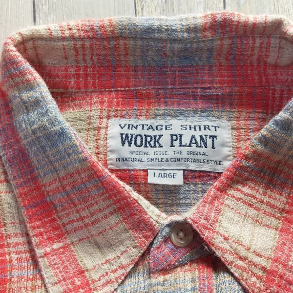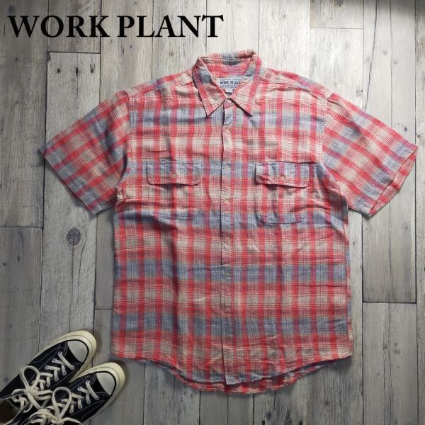☆WORK PLANT ワークプラント☆リネン混 チェック 半袖シャツ size(L) S1591