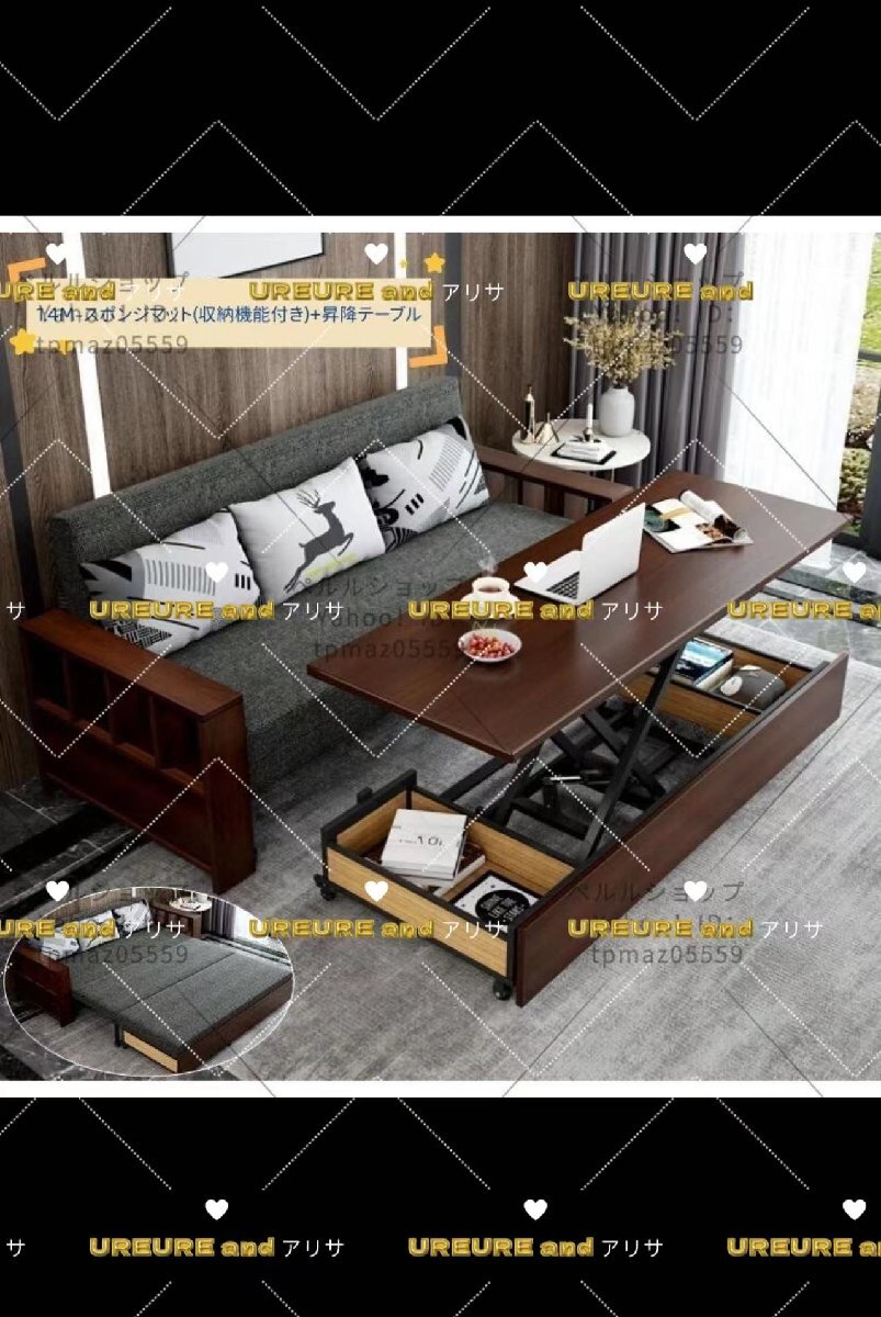 ソファベッド 折りたたみベッド スポンジ/ラテックス/ココナッツパームクッション 1.4M-スポンジマット(収納機能付き)+昇降テーブル
