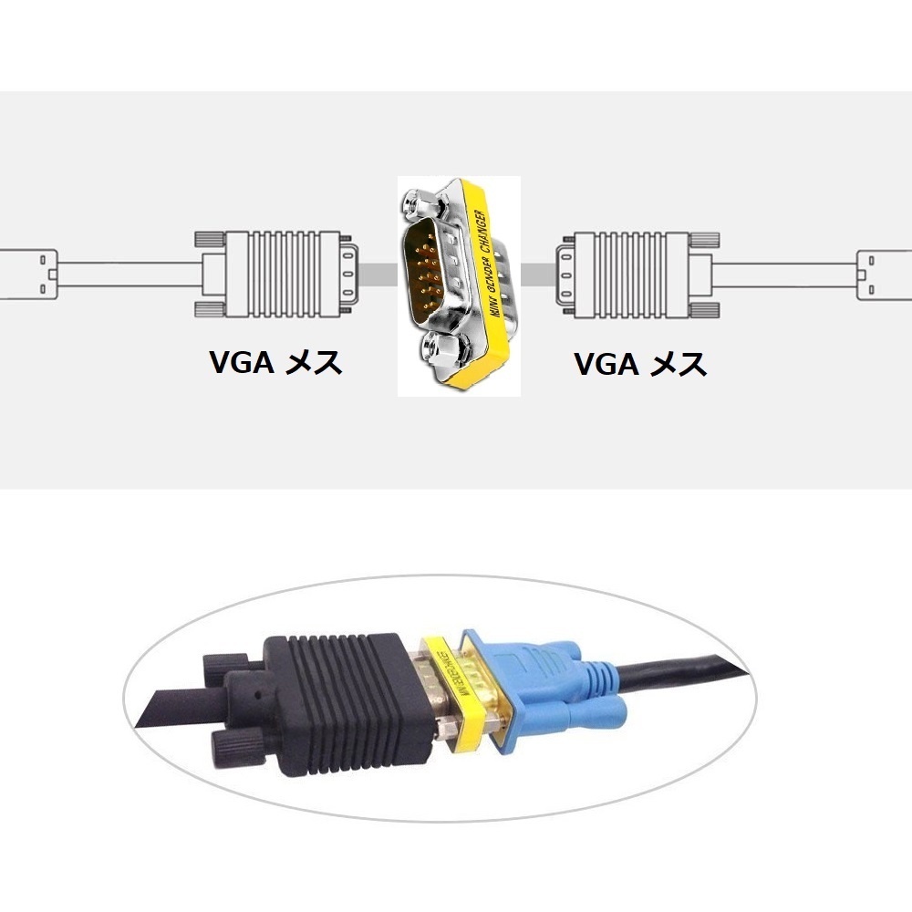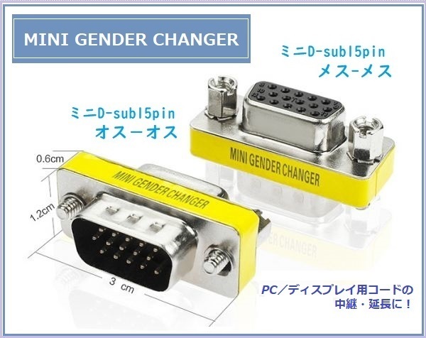 ・ミニD-sub15pinメスのコネクタを持つケーブルを、延長・変換できるオス/オス端子の小型コネクタです。