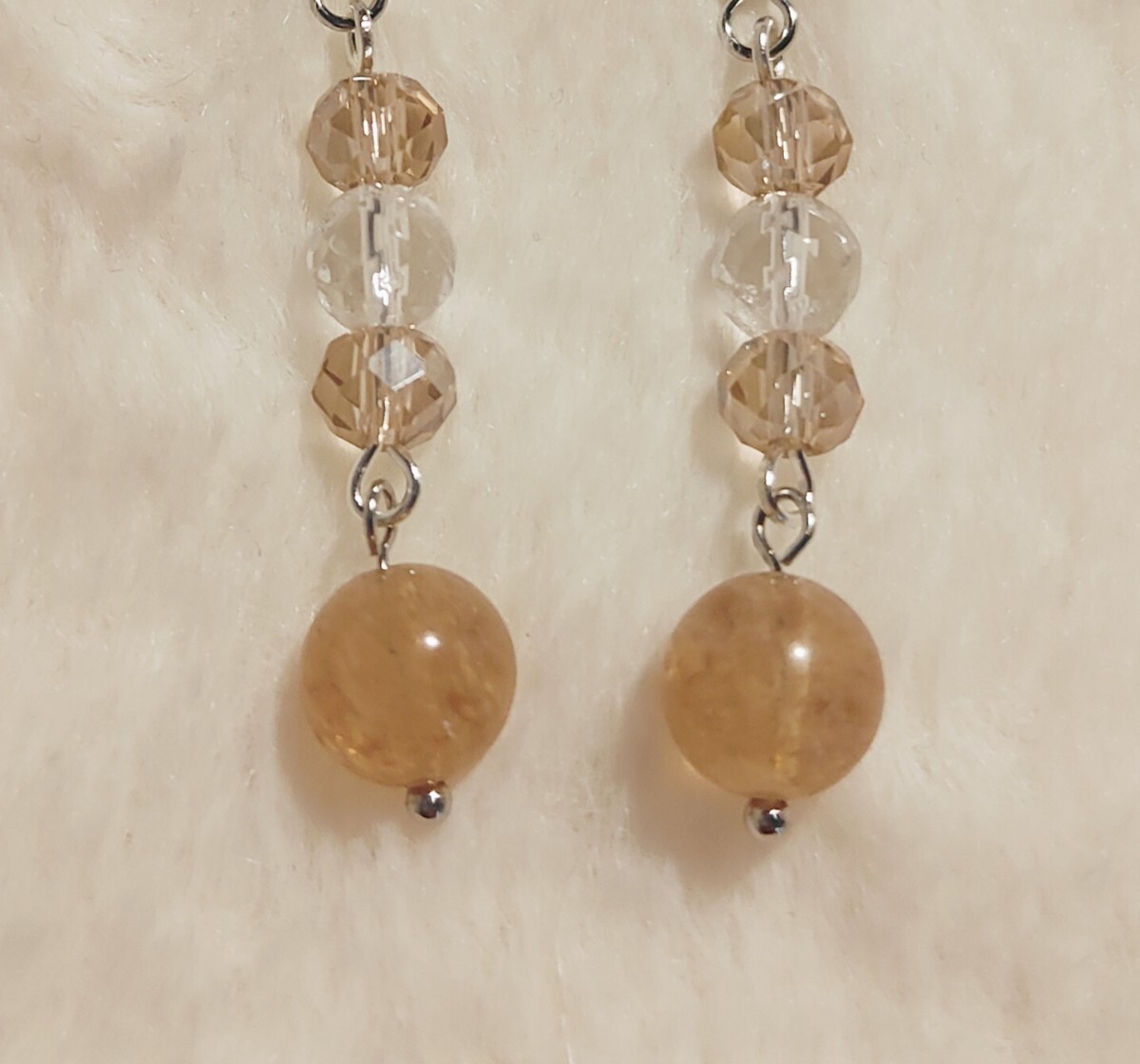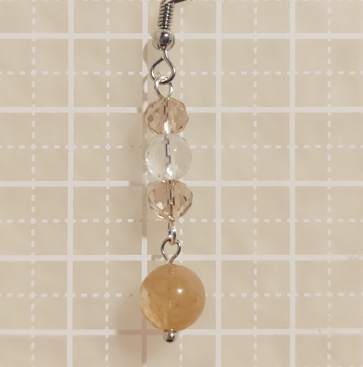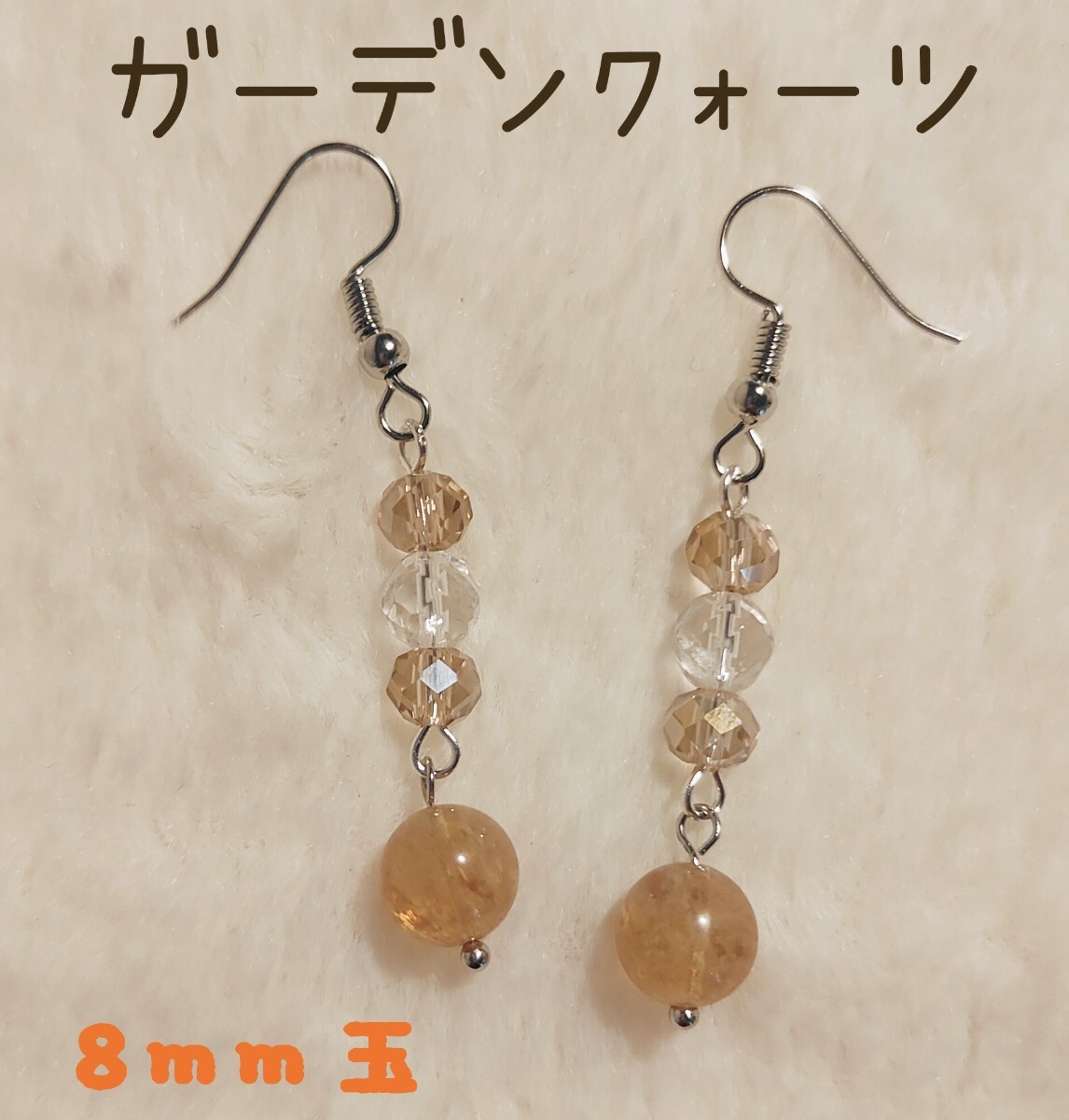 8mm玉のガーデンクォーツ、6mm玉の水晶にガラスビーズを合わせたパワーストーンピアスorイヤリングです(=^・^=)