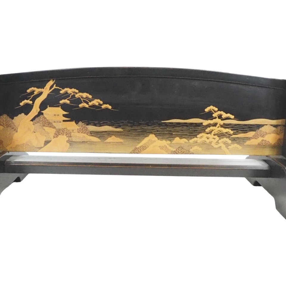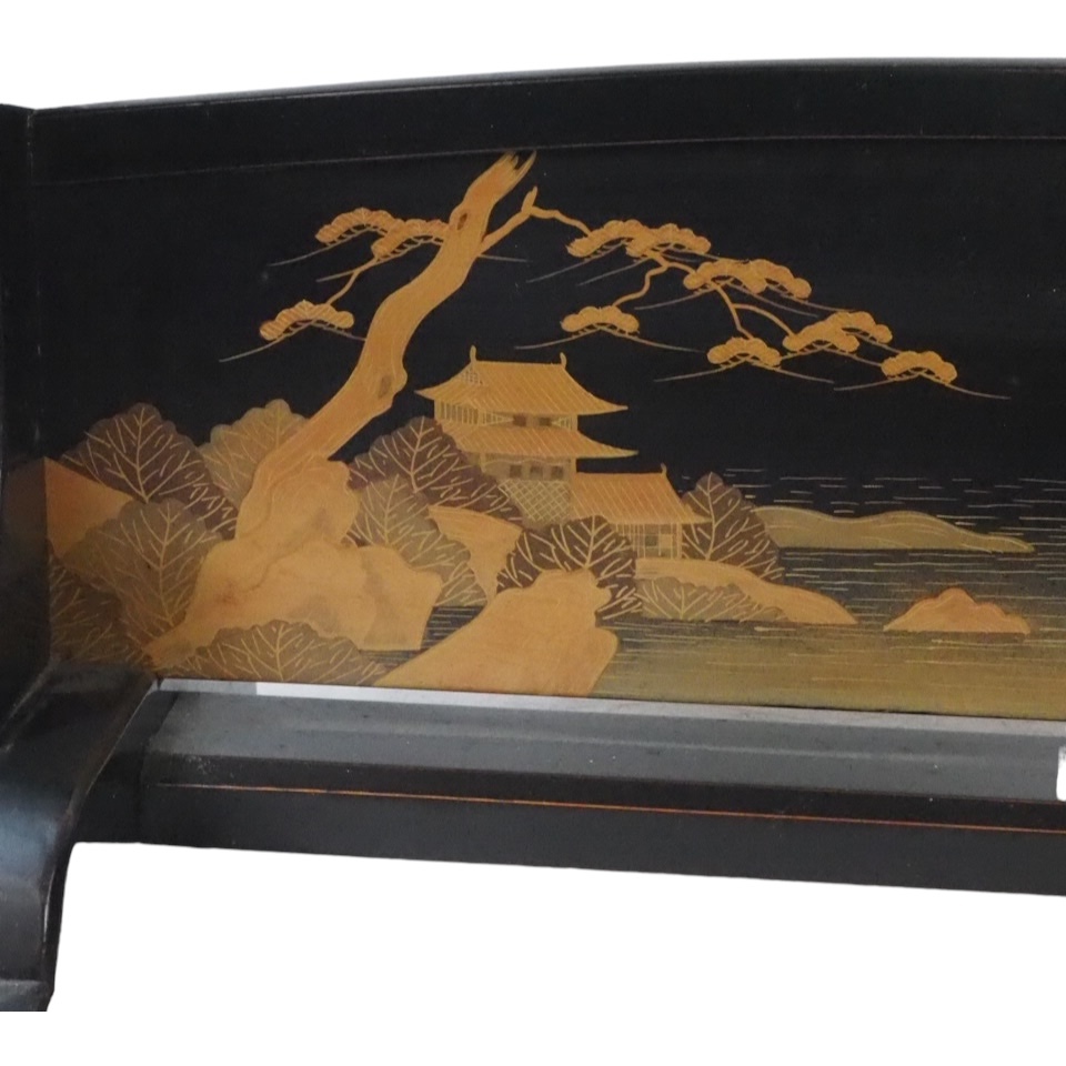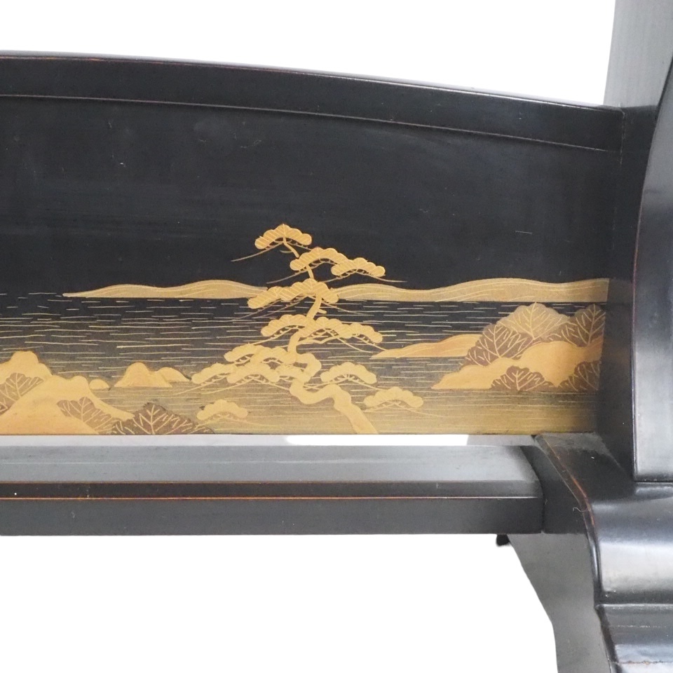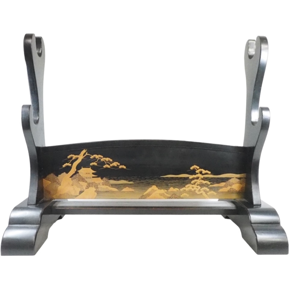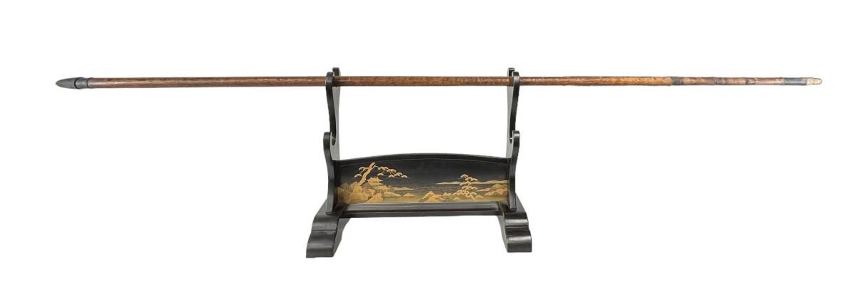 江戸期ビンテージ「長柄武器 槍 柄 槍頭(穂)無し 黒塗金蒔絵山水図二段刀掛付」
