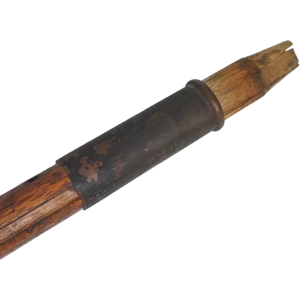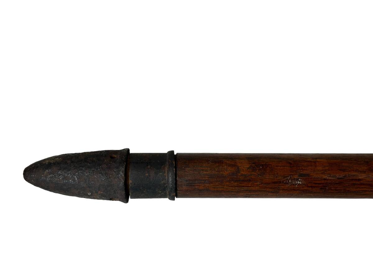 柄は軽くしなりの無い丈夫な木材でできており、石突は、しっかり鍛えられた厚手の鉄地の実戦的なデザインで、重量感あり、