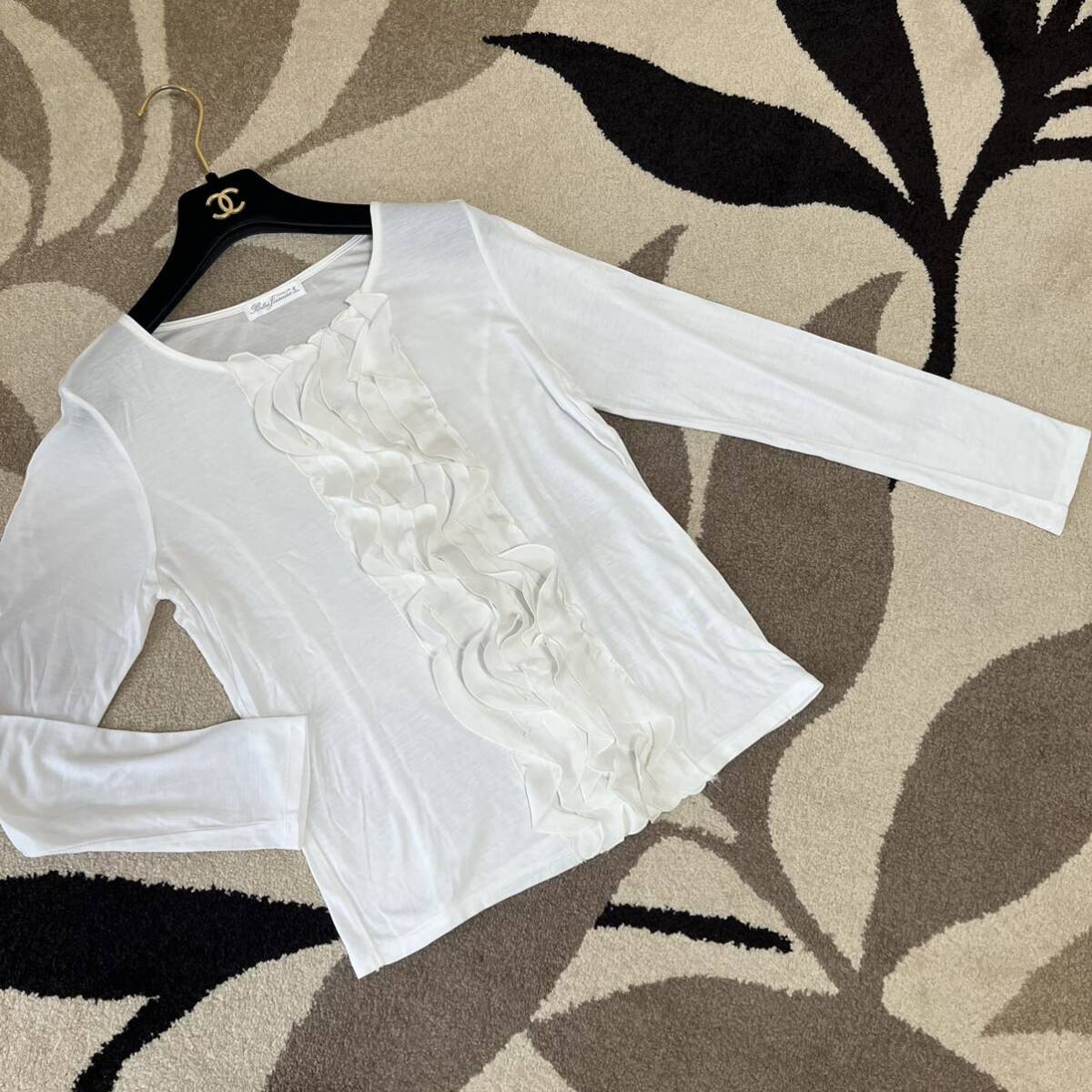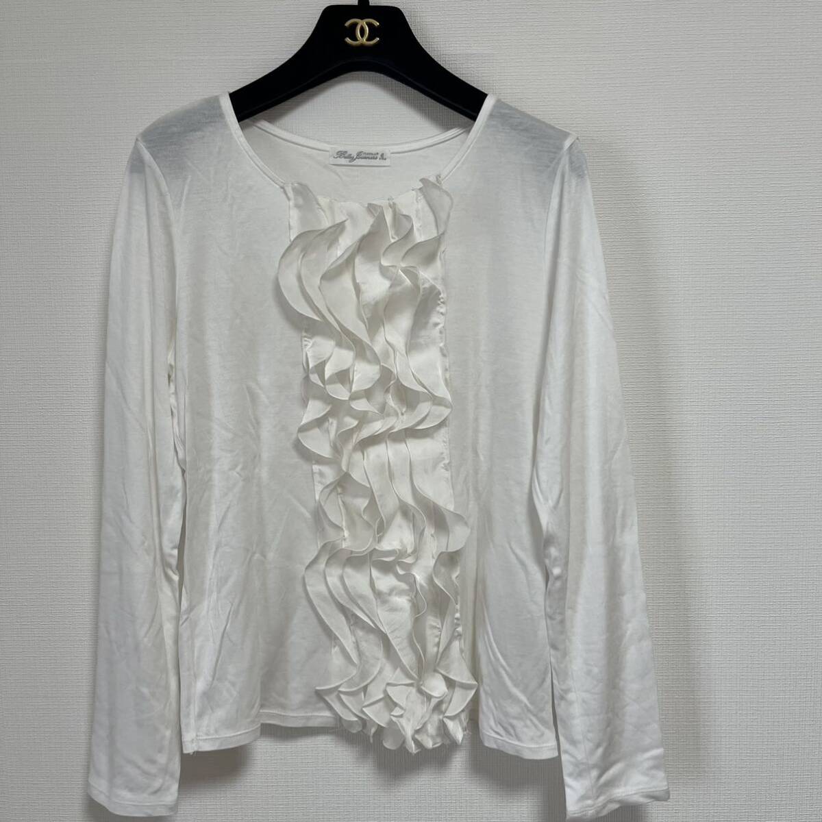 ◆ベルジュルネ エトワール海渡◆フリル カットソー 白 長袖 Lサイズ
